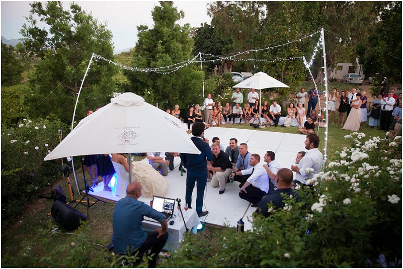 Robertson Wacky Wine 2014 het ons die Saterdagaand by die Klipdrif tent gekuier. Julian het later die aand begin snaaks optree, ek het geweet iets is aan die broei, maar ‘n verlowing was die laaste ding wat ek vermoed het. Desmond Wells, die Afrikaanse sanger het ons op die verhoog geroep. Ek het gedink Julian probeer ‘n grap maak en dat ons gaan sing. Hy het oor die mikrofoon begin praat, maar die gehoor het so gejuig dat ek nie kon hoor wat hy sê nie, maar toe hy op sy knie gaan het die trane gespat en het ek presies geweet wat aangaan. ‘n Koppe telling is net na ons verlowing gedoen, daar was 2000 mense in die gehoor en ‘n professionele fotograaf het alles afgeneem, ons het ook ‘n hele paar video’s ontvang – dis baie spesiaal as ‘n mens na die tyd weer daardie oomblik kan herleef.