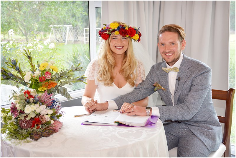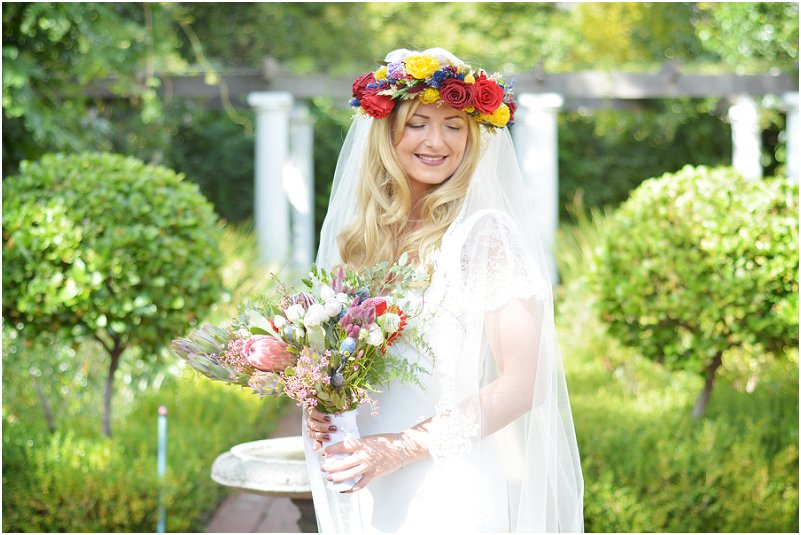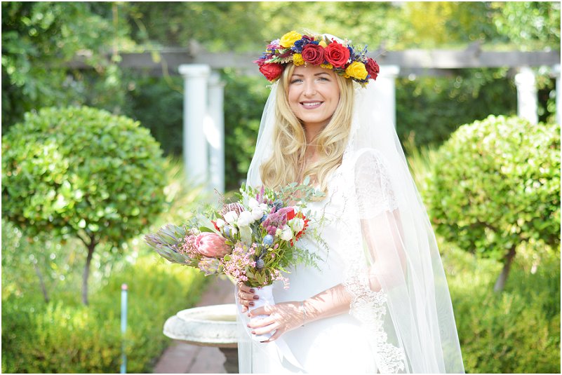 Die paartjie vertel ons dat dit die werk van Cupido was dat hul mekaar ontmoet het.  Ons hou baie van hoe Anton en Samantha se persoonlikhede weerspieël in die mooi helder kleur kombinasies.  Samantha het beeldskoon gelyk met ʼn helder blomme kroon bo op haar kop.