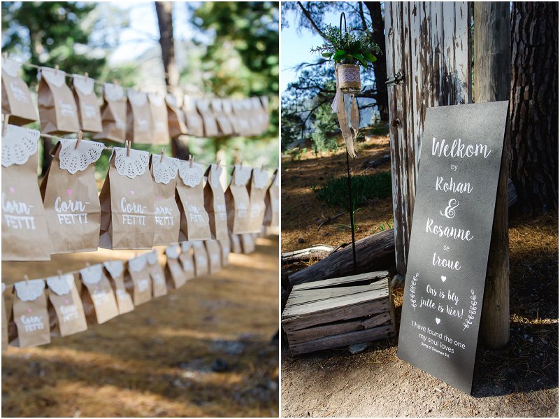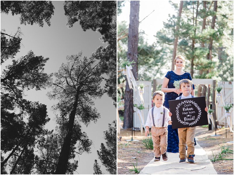 Rohan en Rosanne het hul seremonie tussen die bome gehou en die gevoel van woud en groen was reg deur hul plaastroue gebruik. Die paartjie het gegaan vir minder is meer met ‘n gevoel van die natuur en gee die raad dat paartjies wat nog moet trou eerder hul troue so eenvoudig moontlik te hou. Ons by Mooi Troues is groot liefhebbers van die natuur en hou baie daarvan as paartjies die mooi natuur gebruik in hul trou dekor. Ons weet ook sommer ons lesers sal daarvan hou.