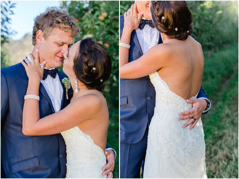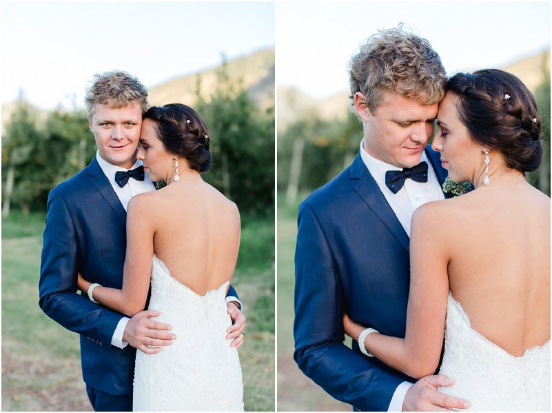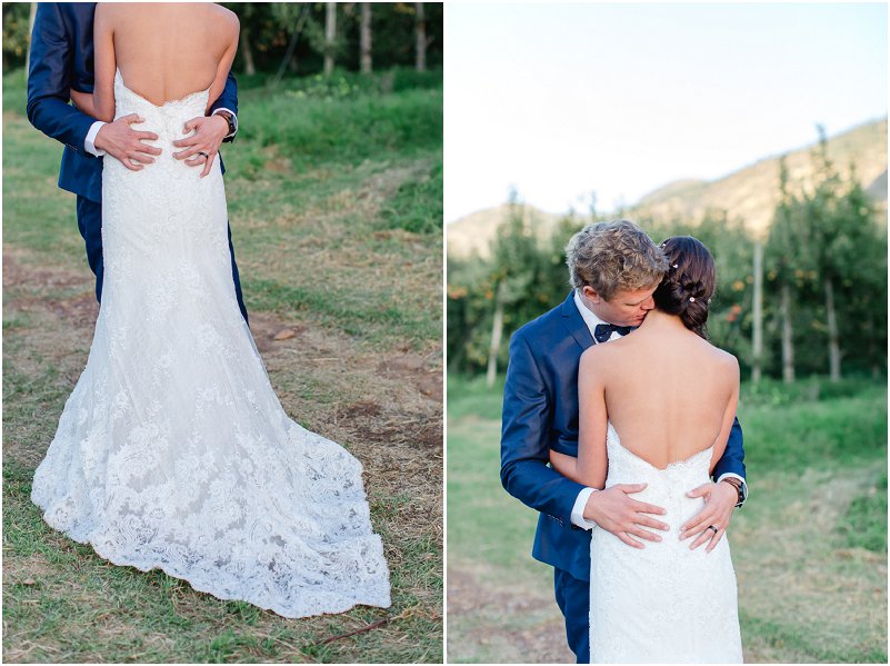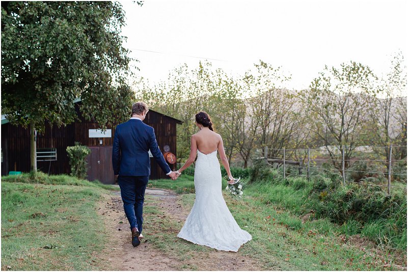 Die bruid het altyd ‘n wens gehad vir ‘n troue in die natuur. Beide van ons geniet die buitelug en vind vreugde in wat die Here geskep het. As ons alleen tyd wil hê gaan ons in die berge in of na die see toe of enige pad wat ons nie onlangs besoek het nie. Ons moes wel die venues gaan besoek het om te sien of dit sal pas by ons behoefte. ‘n Yskoue glasie wyn met die son oor die berge, presies tussen die klein karoo en die see; die plek het ons harte gesteel. Die res van die storie het gepaard gegaan met wat die area ons gebied het. ‘n Baie unieke ondervinding.