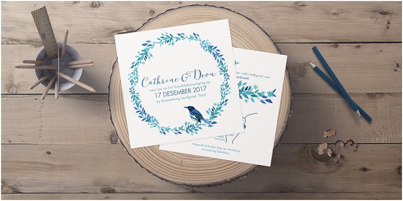 Trou skryfbehoeftes speel ‘n belangrike rol in jou troudag. Daarom deel Mooi Troues weekliks trou skryfbehoefte inspirasie van ons bydraers. Hulle is professionele grafiese ontwerpers met ondervinding in die trou bedryf. Die bydraers verstaan waarna die moderne bruidspaar opsoek is en ken die nuutste tendense. Mooi Troues het ‘n groot verskeidenheid skryfbehoeftes aanlyn, wat ontwerp is deur talentvolle grafiese ontwerpers.