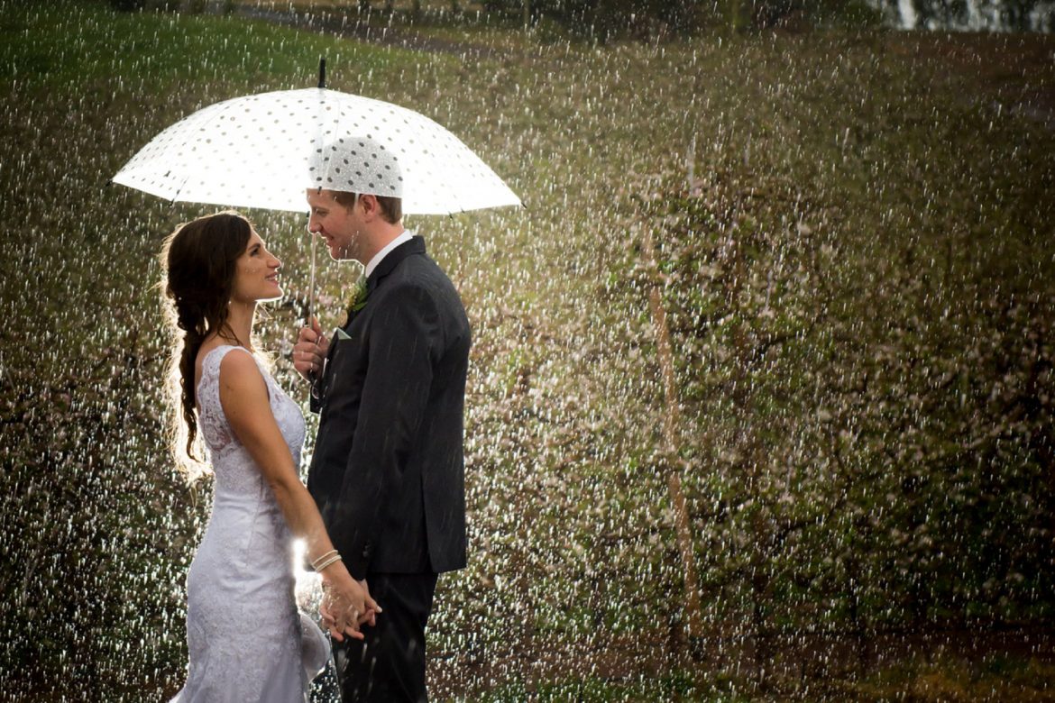 Bruidspare is gewoonlik gestres oor die reën op hul troudag, maar soos ons in die fotos sien van Tinus en Annami se plaas troue het die reën ‘n wonderlike dramatiese effek tot die fotos gegee en soos Annami sê elke druppel was ‘n druppel seëning. Die troue is perfek vir paartjies wat ‘n Winter troue beplan of beplan om te trou waar dit reën gedurende die Somer.