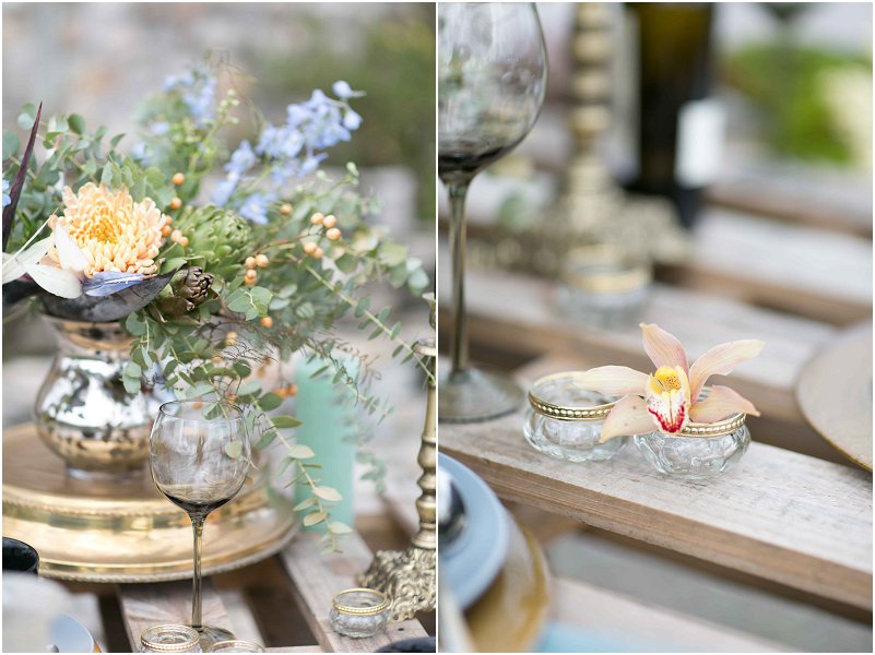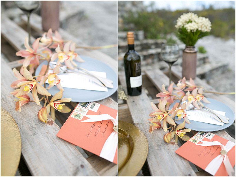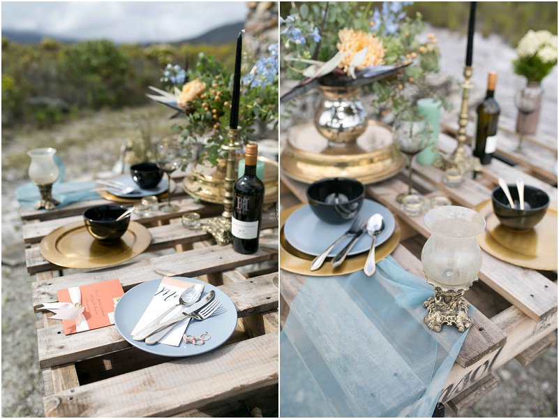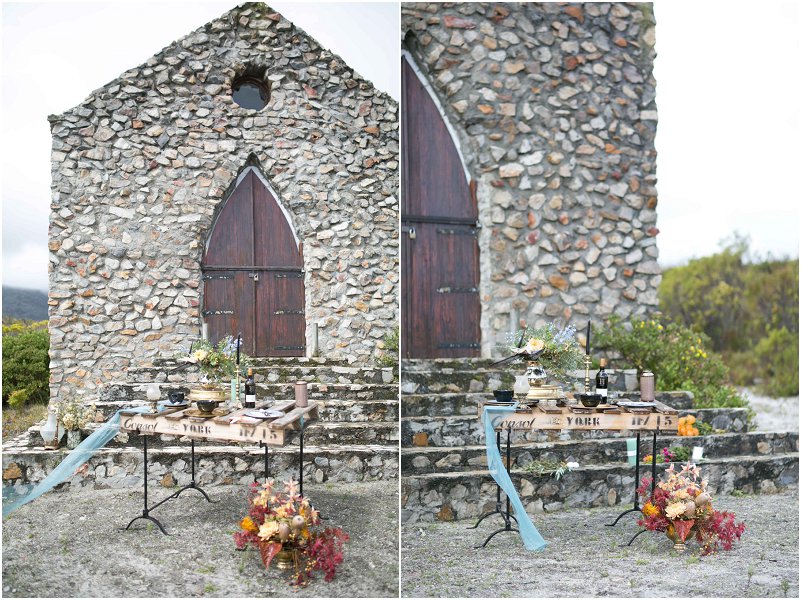 Die ou klip kapel, nou ‘n kuns studio, op die Hamilton Russell wynplaas, staan hoog bo die vallei uit. So ook die bruid wat wag vir haar bruidegom – onmisbaar deel van die landskap vol skoonheid – wag in haar Lubellos® ontwerp van Chantilly kant, Milano satyn en polyster tulle. Die bruid se juwele is diamante en roos goud – die kenmerkende edelgesteentes van Suid-Afrika en vervaardig deur die kunssinnige oog van Marion Rehwinkel. Die tafels van eenvoudige palette en natuurlike kleure – verskuif die aandag na die inheemse blomme van die Weskaap en herinner ons, dat die huwelik ‘n heilige geleentheid is en dat Godgegewe skoonheid onbetaalbaar duur vertoon.