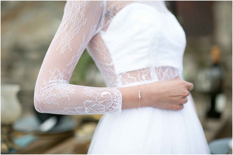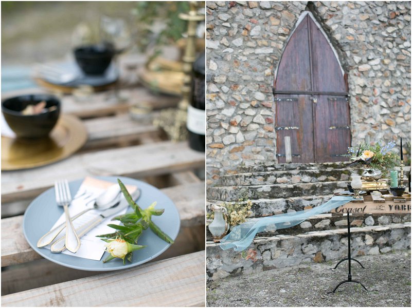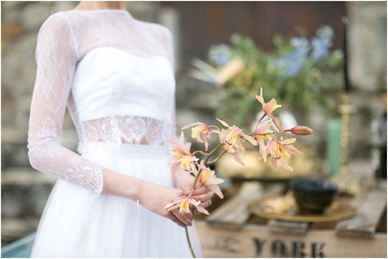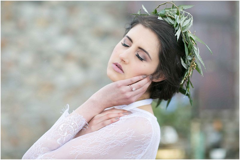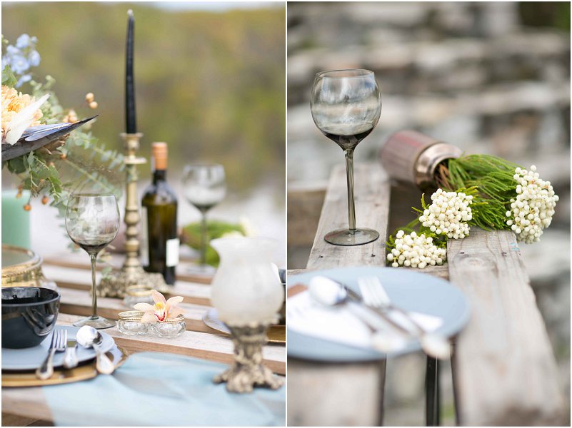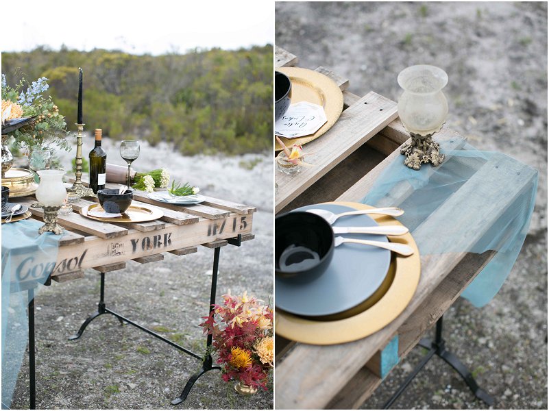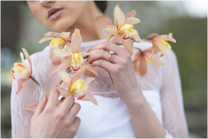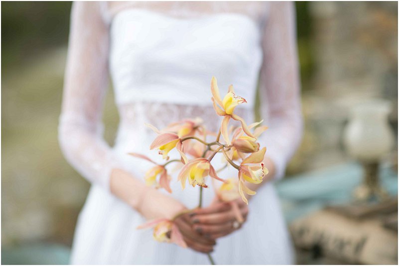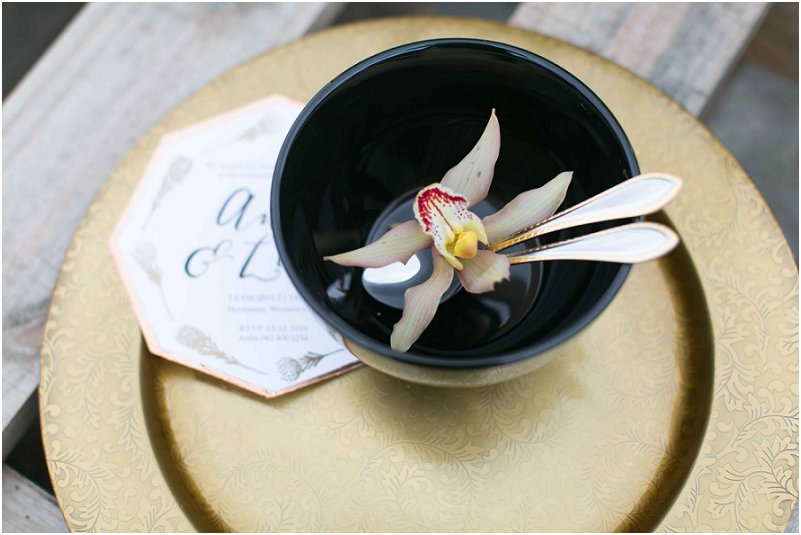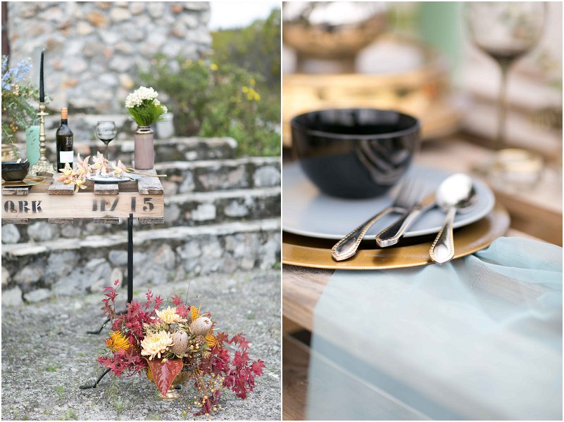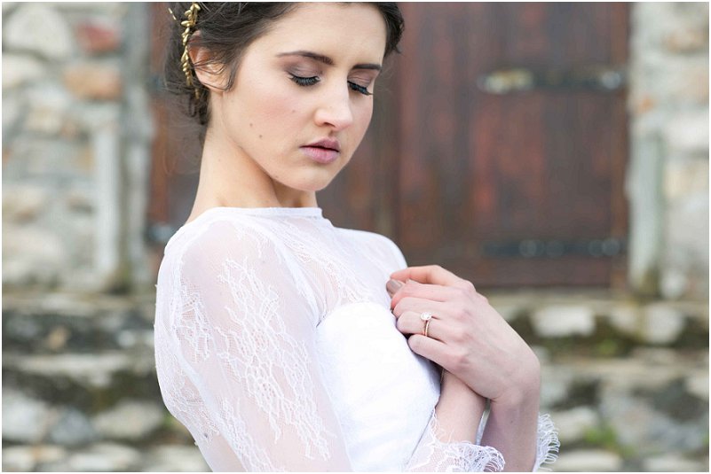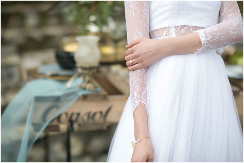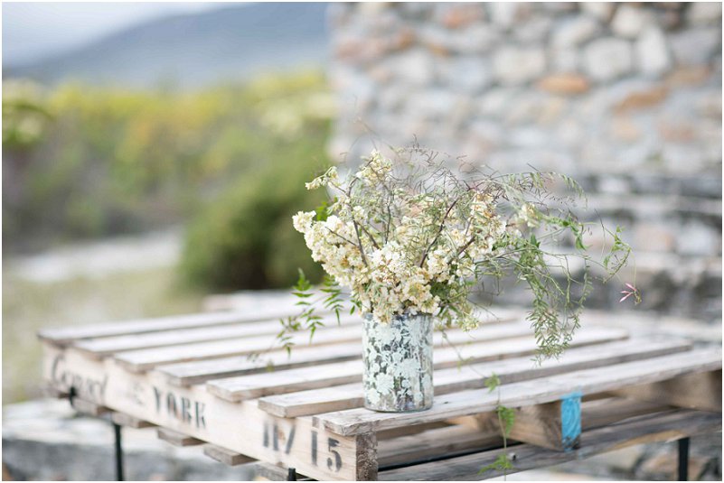 Die ou klip kapel, nou ‘n kuns studio, op die Hamilton Russell wynplaas, staan hoog bo die vallei uit. So ook die bruid wat wag vir haar bruidegom – onmisbaar deel van die landskap vol skoonheid – wag in haar Lubellos® ontwerp van Chantilly kant, Milano satyn en polyster tulle. Die bruid se juwele is diamante en roos goud – die kenmerkende edelgesteentes van Suid-Afrika en vervaardig deur die kunssinnige oog van Marion Rehwinkel. Die tafels van eenvoudige palette en natuurlike kleure – verskuif die aandag na die inheemse blomme van die Weskaap en herinner ons, dat die huwelik ‘n heilige geleentheid is en dat Godgegewe skoonheid onbetaalbaar duur vertoon.