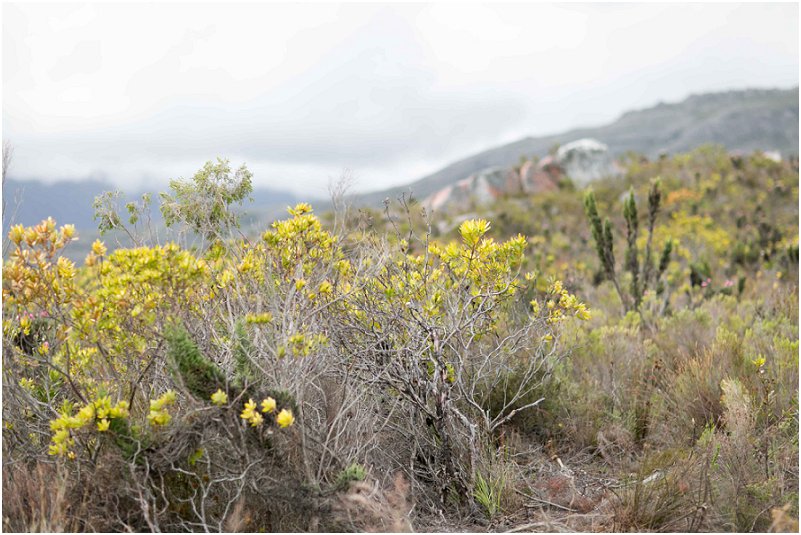 Hemel en Aarde is oortrek met fynbos en vorm deel van die Kaapse blomme koninkryk. ‘n Unieke en diverse versameling van plante word beskerm en versorg in ‘n natuurlike tuin wat jy net in ‘n klein deeltjie van die Kaap sal raakloop. Die skoonheid van die area is gekonsentreer soos ‘n skaars parfuum met die mengsel van bossies en veld-gras in blom. Dis hierdie informele natuurlike blommerangskikking wat die perfekte omgewing vir ‘n bruid is – die vergestalting van perfeksie en prag.