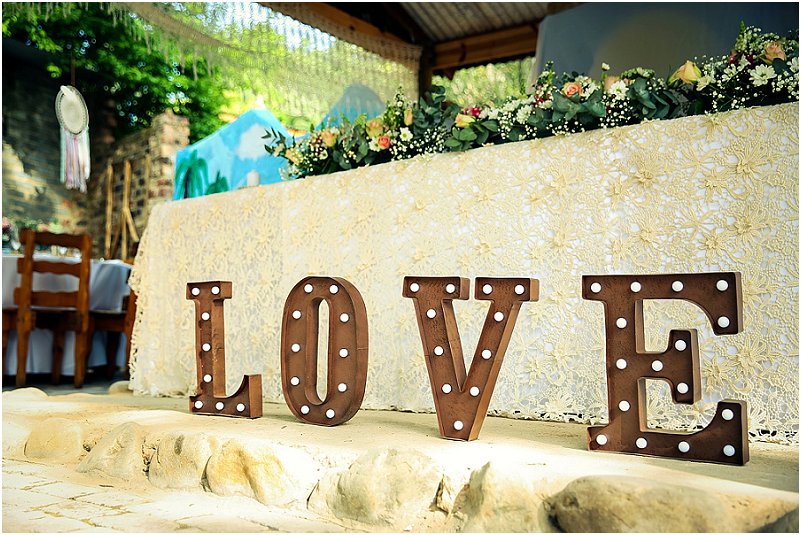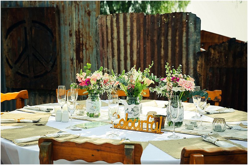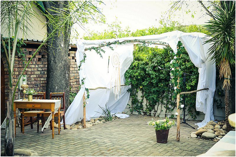 Die hele idee met ons troue was om dit alles self te doen. Ons ‘n jaar en ‘n half tyd gehad om alles te beplan. Elke maand ietsie klein gemaak of gekoop. Die prentjie wat ons wou skep was n Vrye gees, natuur, feetjie troue. Dis hoe ons as mense is. Ons wou ‘n lekker gesellige, gemaklike troue hê, met baie blomme en droomvangers.