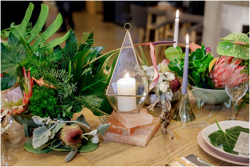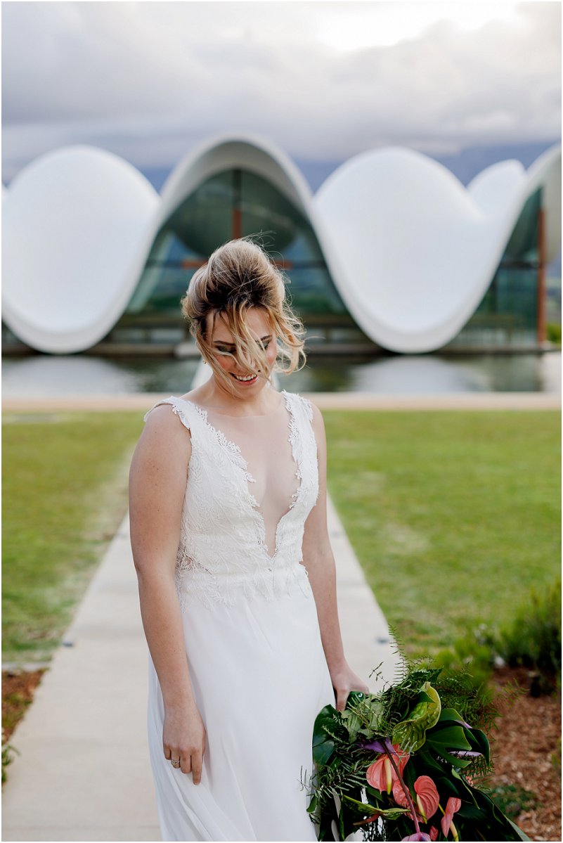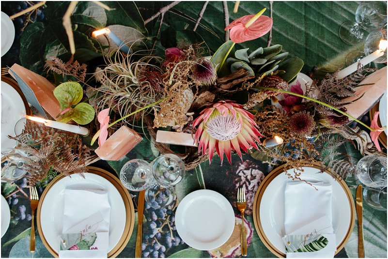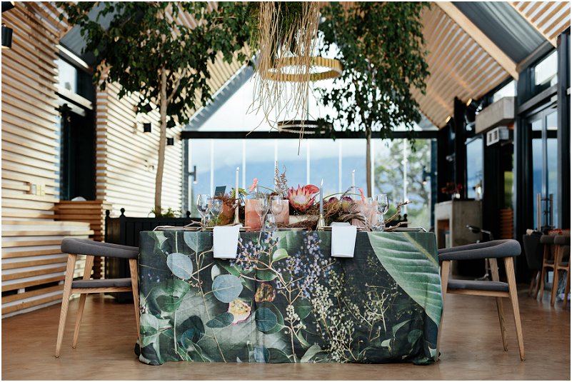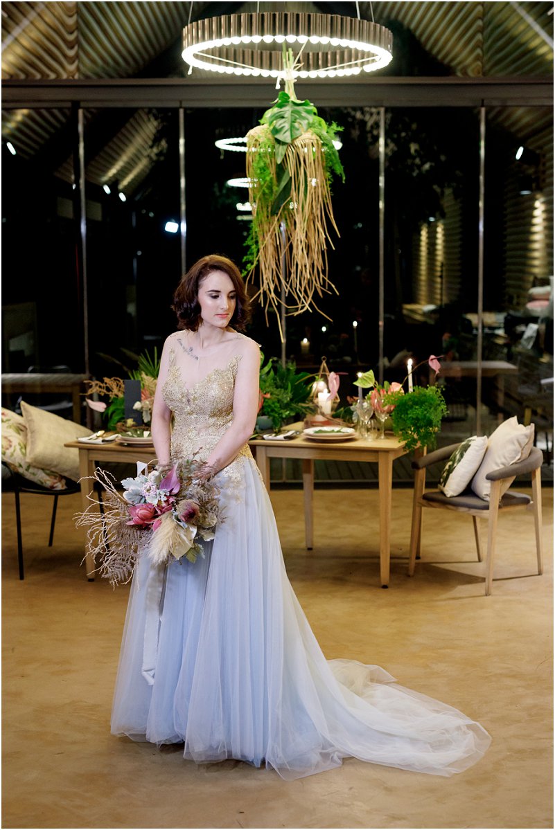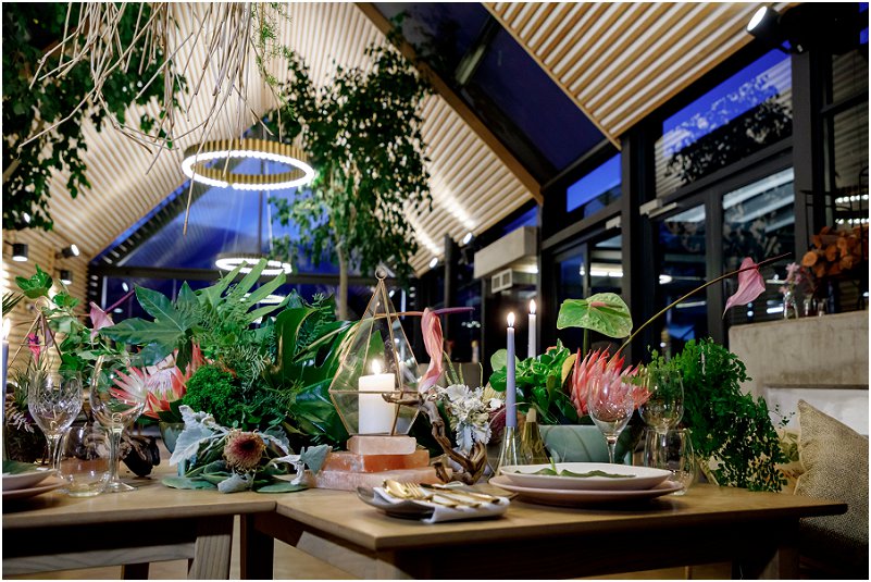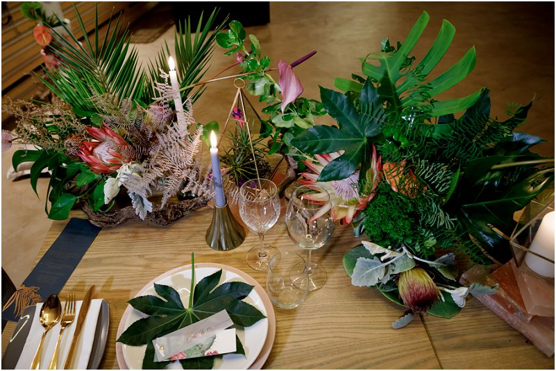 Lariska het by Vivid Blue Photography haar internskap gedoen en Christell by Mooi Troues. Ons het die twee se kreatiwiteit getoets en opgekom met ‘n kontrasterende tema van Tropies en Karoo. Hulle hetBOSJES as venue gekies vir die unieke kapel en Karoo gevoel van die omliggende areas.