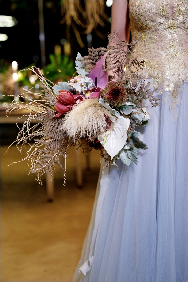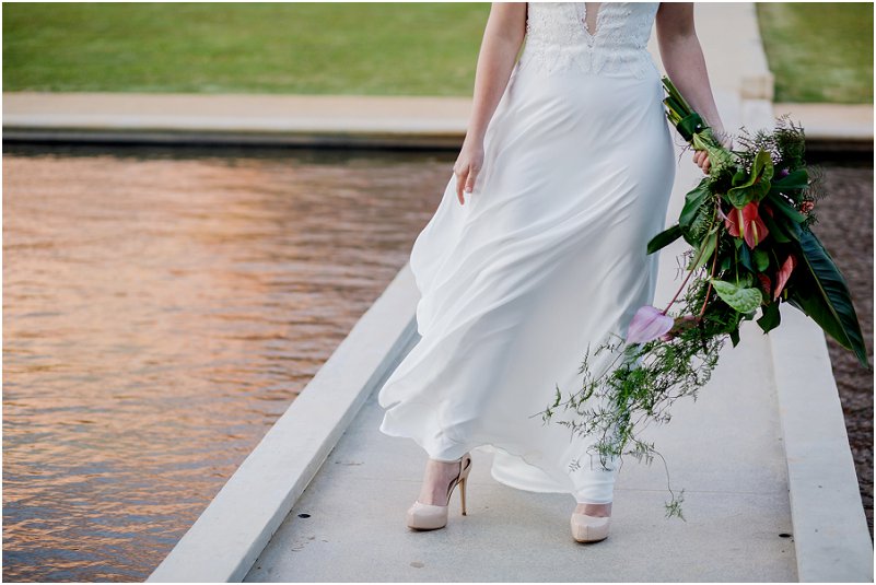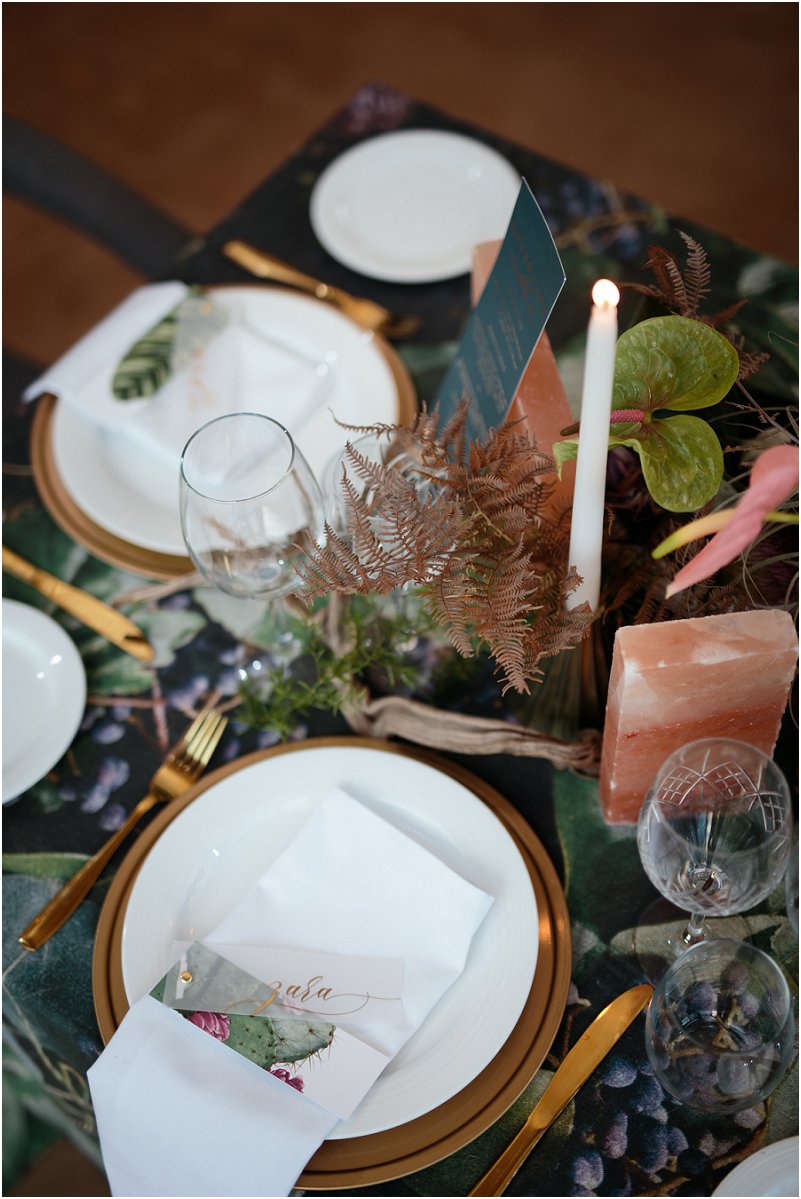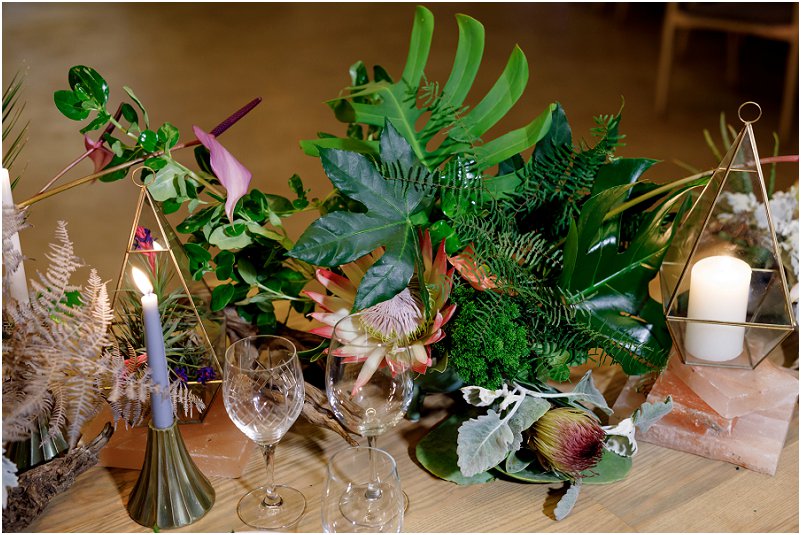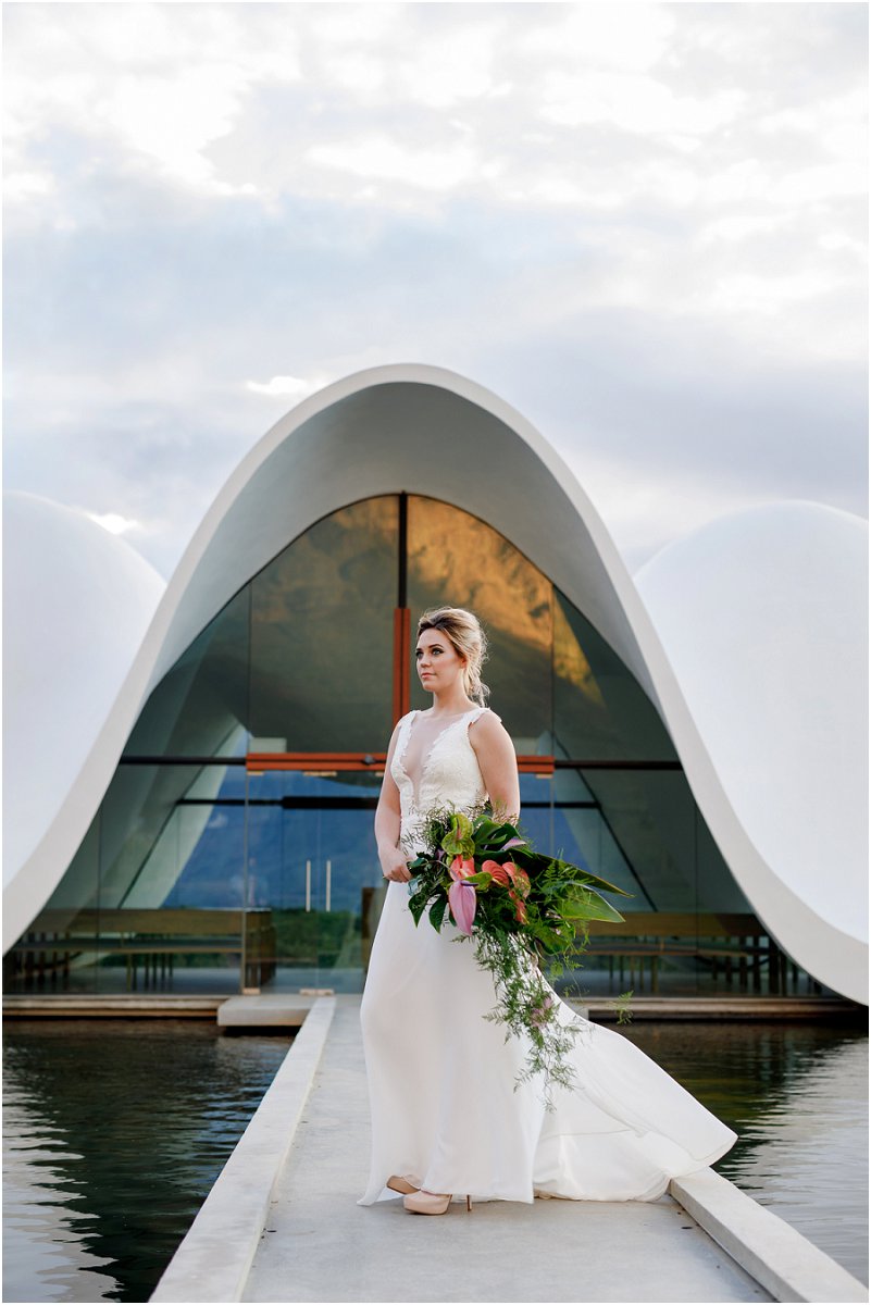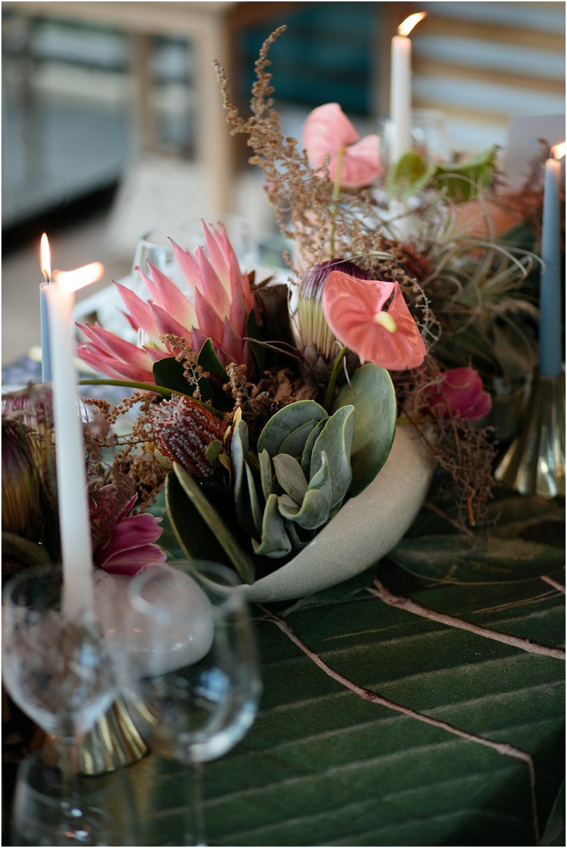 Lariska het by Vivid Blue Photography haar internskap gedoen en Christell by Mooi Troues. Ons het die twee se kreatiwiteit getoets en opgekom met ‘n kontrasterende tema van Tropies en Karoo. Hulle hetBOSJES as venue gekies vir die unieke kapel en Karoo gevoel van die omliggende areas.
