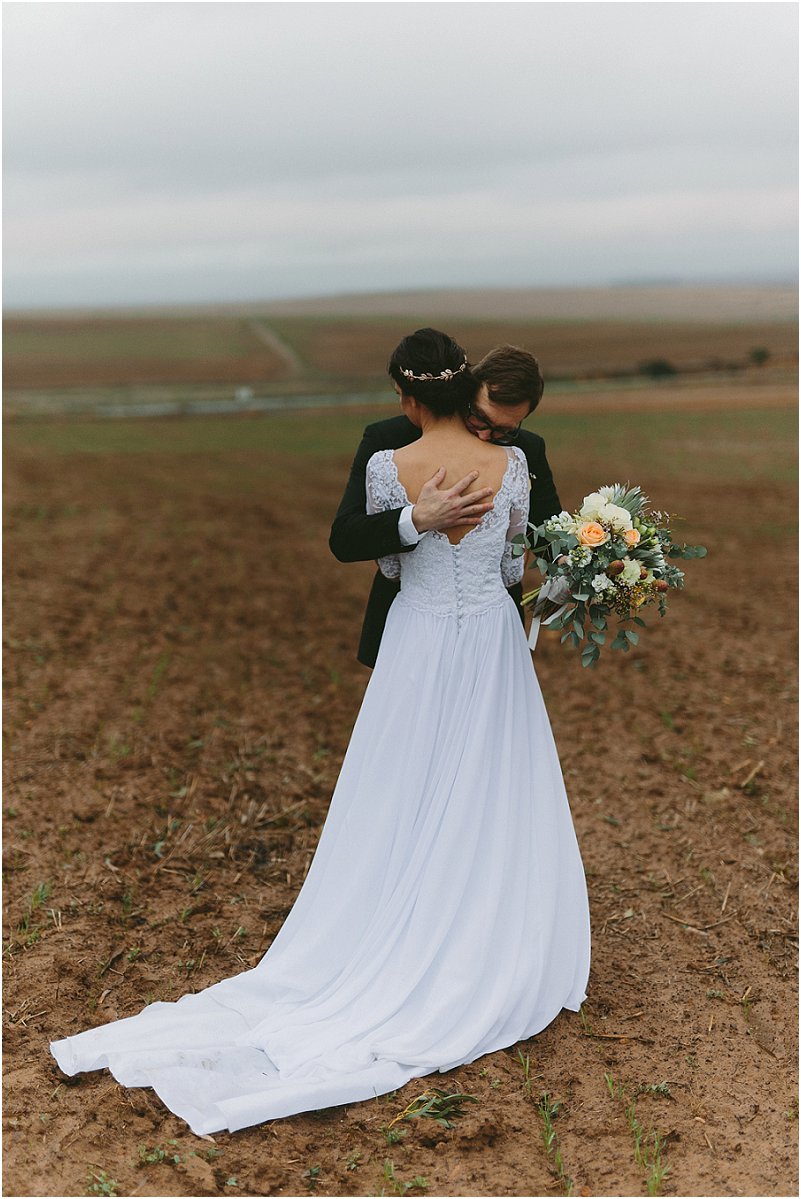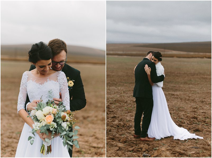 Francois & Lindie-Lee het in die Winter getrou. Die Winters kleure, donker wolke en nat grond het agtergrond geskep vir dramatiese mooi fotos. Die foto’s is vol inspirasie vir paartjies wat in die Winter wil trou. Wat ook besonders was aan die troue, is dat die paartjie twee onthale gehad het. Met hulp van vriende en familie, het hul mooi dag hul net R120 000 gekos.