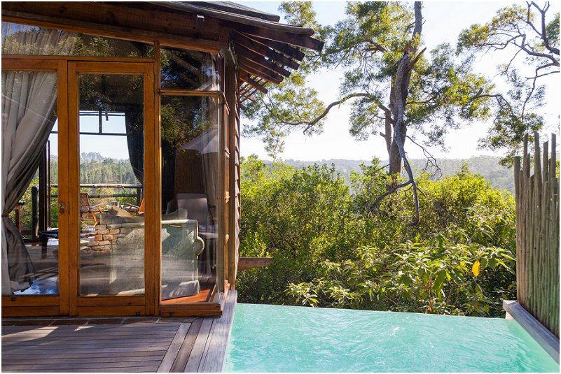 Tsala Treetop Lodge is geleë tussen Knysna en Plettenbergbaai. Dit is seker een van die vyfster hotelle in Suid-Afrika met die beste uitsig! Tsala Treetop Lodge is die perfekte luukse wittebrood plek vir paartjies wat opsoek is na iets anders as die gewone hotel verblyf. Dit is die idilliese plek om jou wittebrood deur te bring, al boek jy net vir ‘n naweek of as jy wil ‘n week.