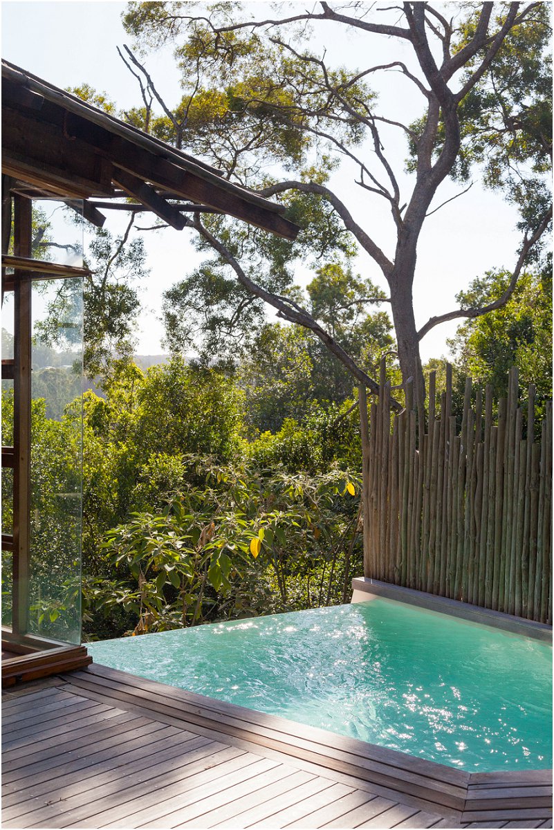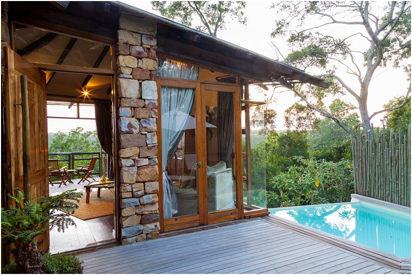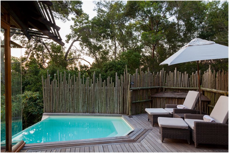 Elke suite het ‘n privaat swembad en hout dek waar jy lekker in die son kan lê en boek lees of net die natuurlewe om jou geniet.