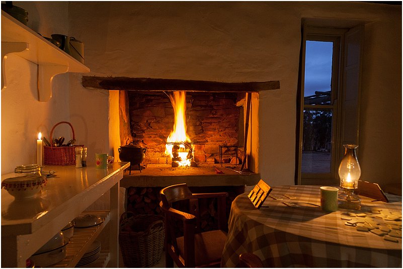 Alhoewel daar ʼn buite braai is, is daar ook ʼn binne braai wat gebruik kan word as ʼn braai of ʼn lekker groot kaggel op die koue winters aande in die platteland. Meeste lig word voorsien deur paraffienlampe en kerse wat verskaf word. Dit is mos hoe jy ʼn vakansie in die platteland wil hou! Daar is wel bed liggies in die kamers en die kombuis en badkamer het ordentlike dak ligte wat lekker helder is. Daar is ook kragproppe om jou foon te laai, indien jy foon regtig nodig sal hê. Om eerlik te wees ons het skoon van ons fone vergeet, want ons was te besig om bordspeletjies wat in die kas gevind was te speel langs die heerlike braaivleis vuur.