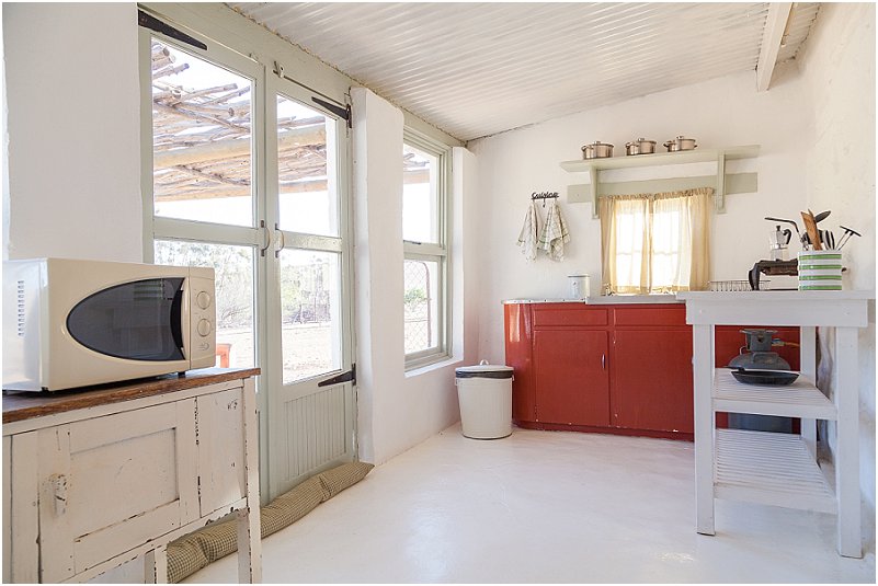 In die kombuis is daar ʼn gasstoof, mikrogolf en yskas. Die kombuis is lekker ruim en het ʼn dubbel deur wat uitloop op ʼn stoepie langs die swembad en lekker groot buite-braai met ʼn uitsig van die graan- en Kanola lande wat die plaas omring.