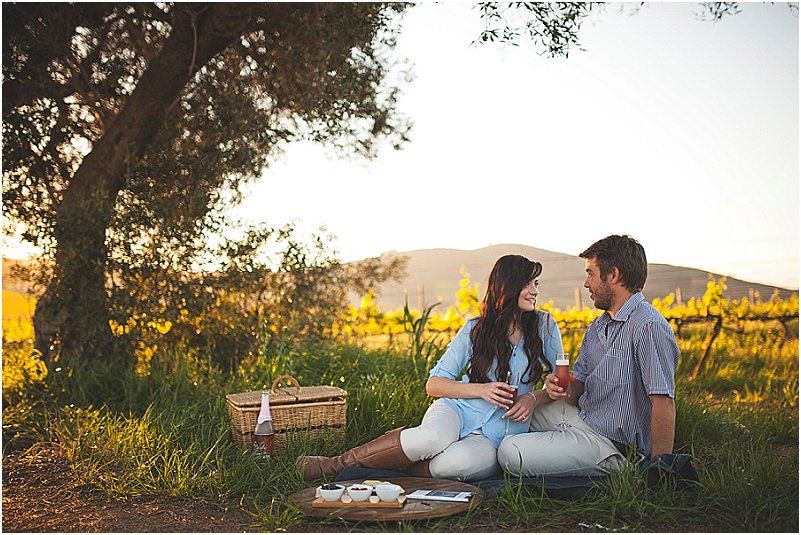 Hierdie gelukkige paartjie se humor en grappies tussen mekaar is sigbaar in die foto’s en ons kan net dink watse makietie die twee se troudag gaan wees die jaar Junie-maand. Hulle foto’s is geneem tydens die befaamde “Golden Hour” waarvan fotograwe nie genoeg kan kry nie, hou beslis hierdie ingedagte wanneer jy jou fotosessie beplan. Die paartjie het slim gedink en ‘n piekniek mandjie gepak met sjampanje om te geniet tydens en na die fotosessie, want met ‘n omgewing so mooi rondom jou, moet jy ‘n tydjie neem om te ontspan en die prag in te neem. Kyk onder om meer van die pragtige paartjie en hul foto’s te sien.