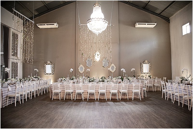 “Eenvoudig, stylvol, klassiek tog modern” was die inspirasie vir Jacques en Leentjie se pragtige troudag en wanneer ons na die fotos onder kyk sien ons dat die troue baie stylvol saam gestel was. Die gesegde “Minder-is-meer” sien ons gereeld in bruide se antwoorde as ons hul in Mooi Troues se artikels vra oor die inspirasie vir die trou dekor. Dié paartjie se tafel dekor was minimalisties, tog het die strepe van die tafeldoeke ʼn baie warm en romantiese atmosfeer geskep.