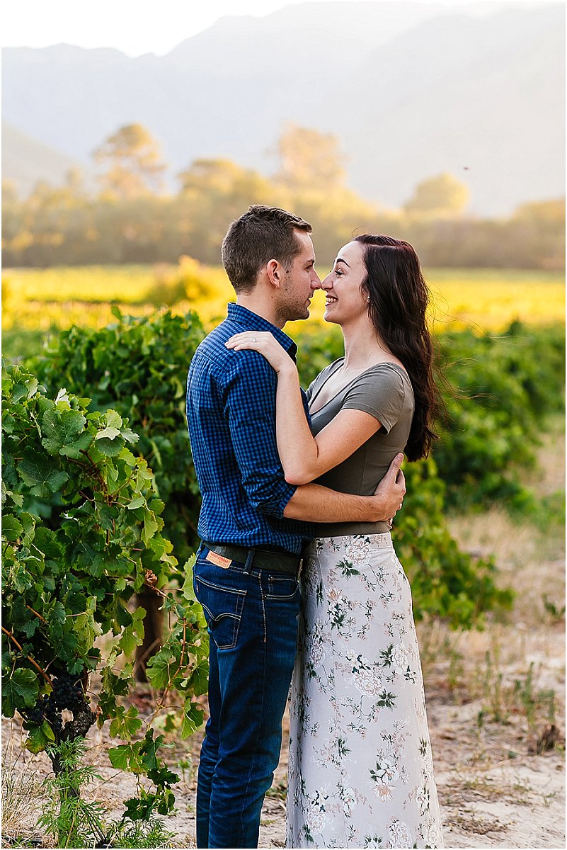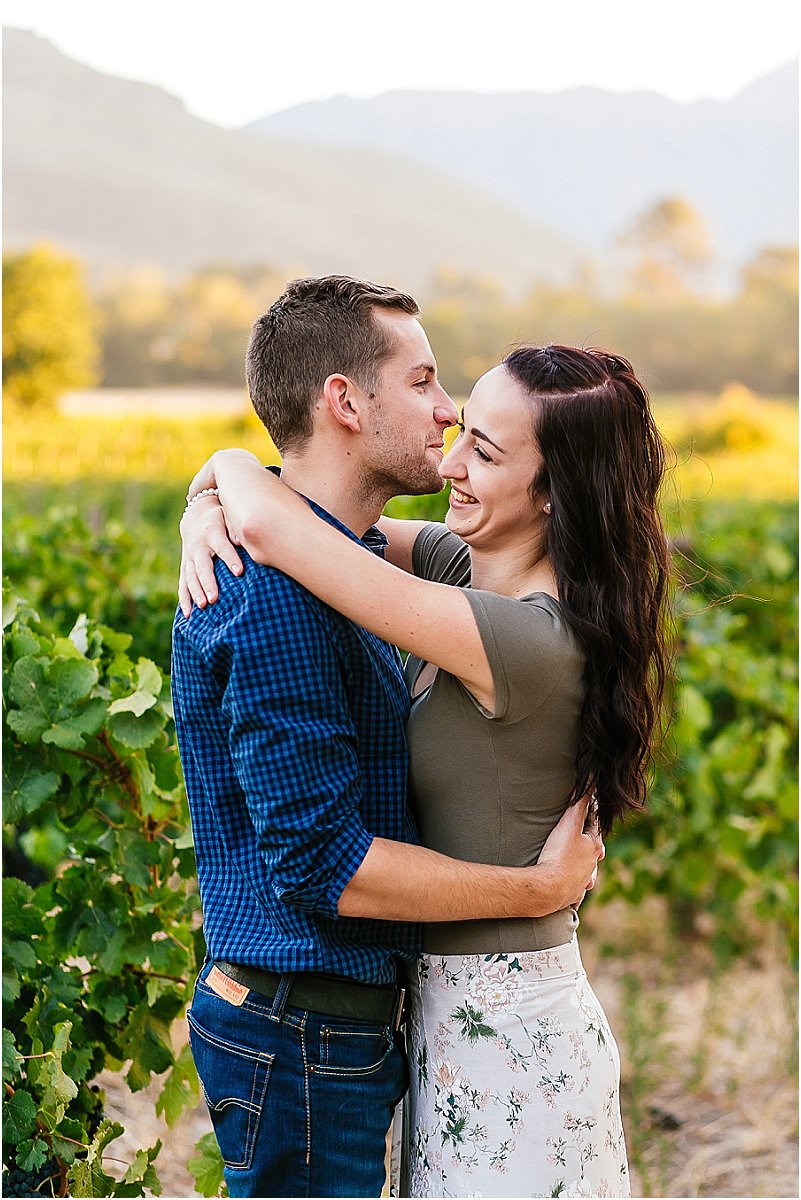 Op ‘n groot wit duin met die geluid van die see in die agtergrond het Barry die groot vraag aan Renèe gevra. ‘n Rukkie nadat ‘n paar senuweeagtige grappies gemaak is, het Barry op sy knie gegaan en kort daarna was hierdie twee verlief asook verloof! Hierdie verloofdes se vlammetjie het op Tygerberg kampus tydens hulle Universiteitsjare vlam gevat en brand nogsteeds vol stoom tot vandag toe. Met Franschhoek se berge, wynlandgoed en mooi sonsondergange, kon hierdie paartjie nie anders as om dié spesifieke area te kies vir hulle verlowings fotosessie nie.