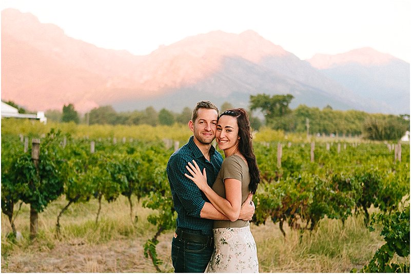 Beide van ons is mal oor die natuur, die berge en die wynlande van die Kaap. Met Franschhoek se berge, wynlande en mooi sonsondergangs, kon ons nie anders as om diè spesifieke area te kies nie.