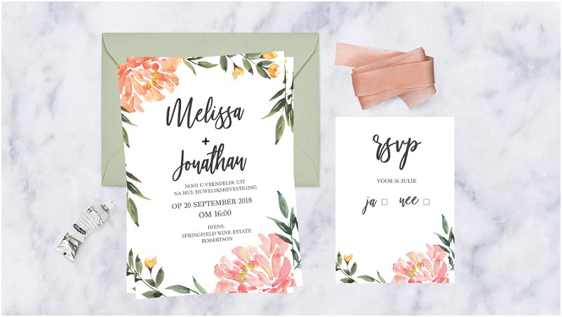 Trou skryfbehoeftes speel ‘n belangrike rol in jou troudag. Daarom deel Mooi Troues weekliks trou skryfbehoefte inspirasie van ons bydraers. Hulle is professionele grafiese ontwerpers met ondervinding in die trou bedryf. Die bydraers verstaan waarna die moderne bruidspaar opsoek is en ken die nuwe tendense. Mooi Troues het ‘n groot verskeidenheid skryfbehoeftes aanlyn wat ontwerp is deur talentvolle grafiese ontwerpers.