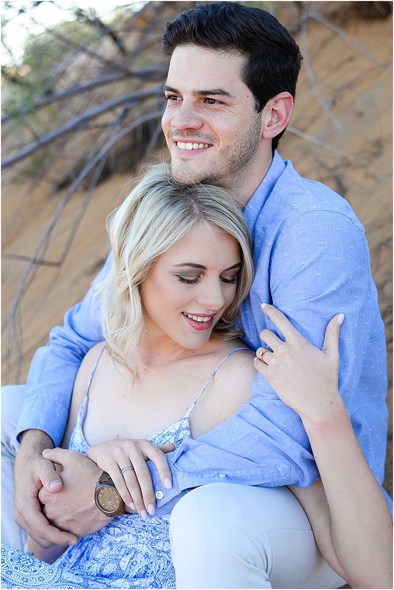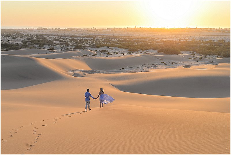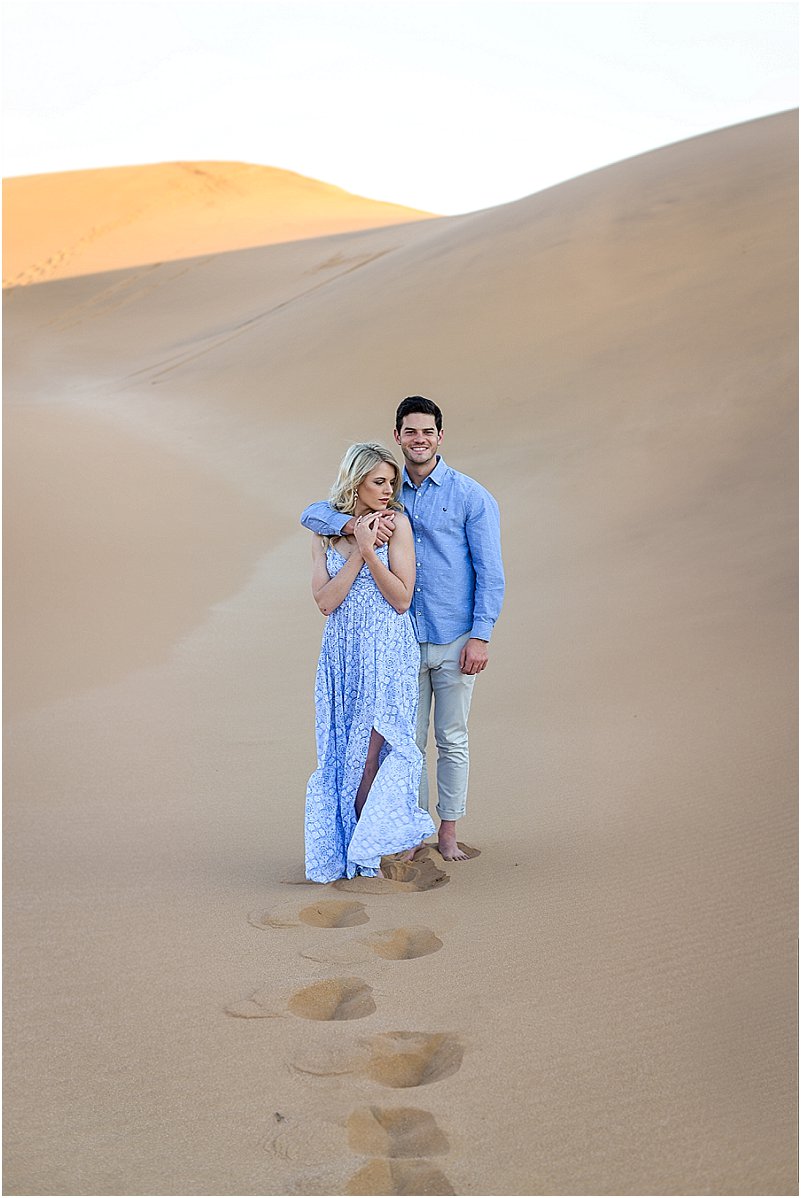 Marisa kom van Namibië af en wou graag ‘n klein stukkie van die huis deel hê van die troue, omdat ons in Nelspruit trou waar Jacques vandaan kom. Ons albei is baie lief vir die natuur en het al baie avonture saam gedeel, waarvan een van ons gunsteling herinneringe so op Swakopmund se duine is terwyl die son stadig sak en die see saggies die sandduine vir oulaas besoek. Ons wou foto’s hê wat die natuurlikheid van ons verhouding se vriendskap en romanse goed uitbeeld en Augusta en haar kamera het dit vir ons moontlik gemaak!