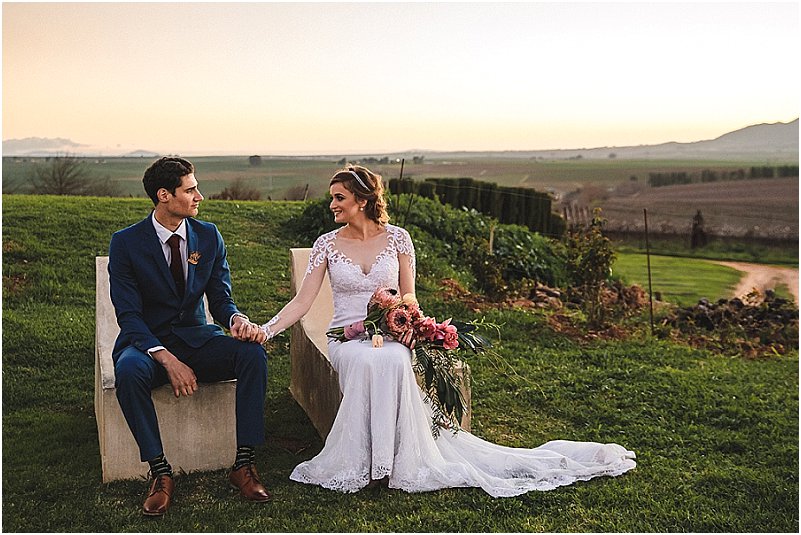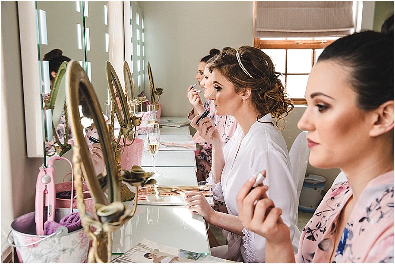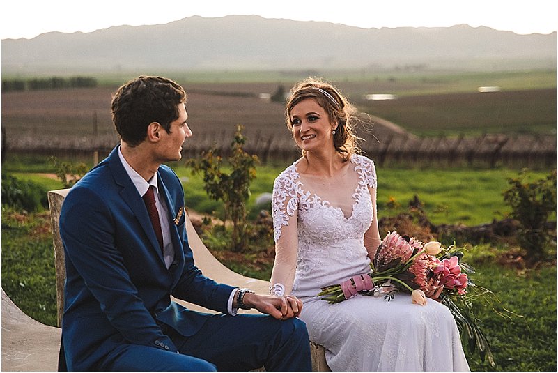 Wat nog vir ons briljant was, is die foto’s van Chandré en haar strooimeisies wat in ʼn ry sit en grimering doen; En dan in ʼn ander foto in ʼn ry sit met gekruisde bene en elk ʼn Mode Tydskrif lees – dit laat ons so terug ding aan die Grease fliek! Ons sê baie dankie aan die fotograaf wat hierdie ongelooflike dag op kiekies vasgevang het. Die Suid-Afrikaanse Nasionale blom Protea was ook in baie elemente van dié paartjie se troue gebruik.