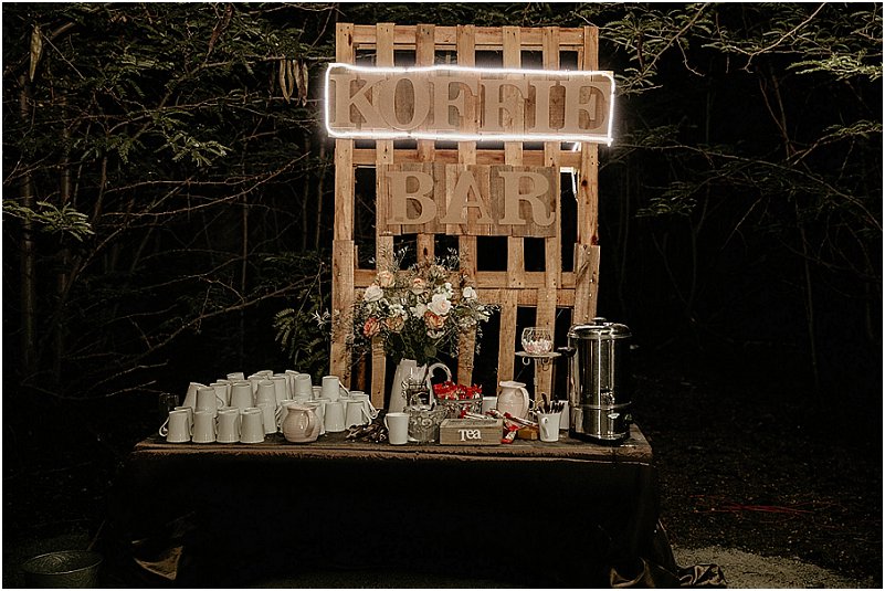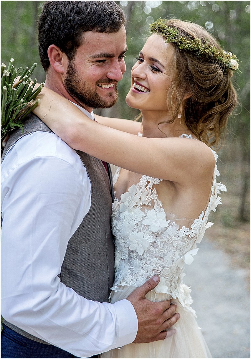 Ek was maar nog altyd een vir sprokies, met my kop vol prentjies. Met Deus Amor Est se bos onder ‘n duisend sterre, kon ons werklik die skoonheid van die omgewing benut. Deus Amor Est is ‘n sprokiesvenue. Die bos, die kerk en al die wandelpaadjies deur die bos. Ons wou ons liefde vir mekaar en ons liefde vir Hom vier. Deus Amor Est, wat beteken “God is Liefde” was die perfekte agtergrond vir ons bruilof.