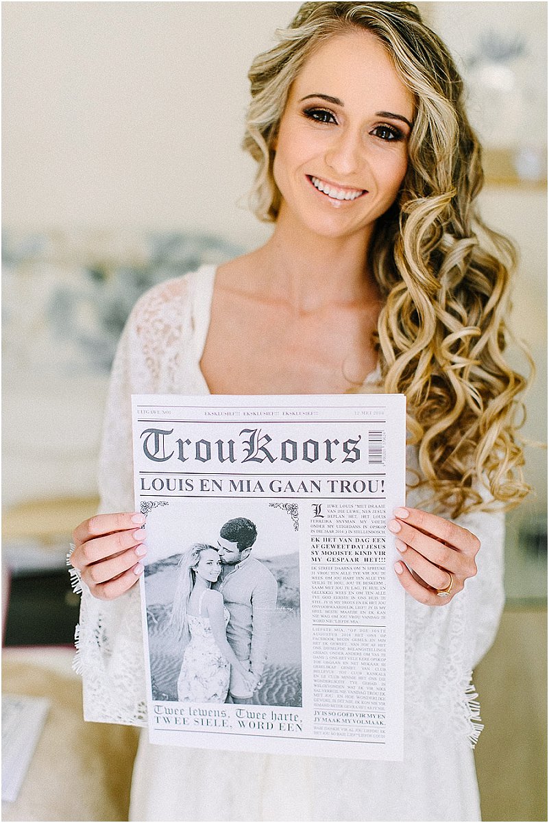 Ons raad sal wees is dat niemand anders tevrede gestel moet word behalwe julle twee nie. Die hele dag gaan oor julle twee en julle liefde vir mekaar. Ja!! Luister na raad, maar julle hoef nie alles te volg of na alles te luister nie. Geniet elke bietjie beplanning en detail! Dit gaan so vinnig verby. Betrek mekaar met alles en as sy later dalk bietjie soos ‘n “Bridezilla” optree, gee haar ‘n stuiwe drukkie.