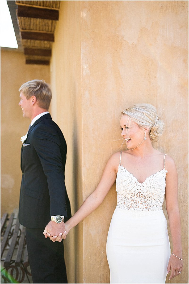 In die foto’s hieronder kan ons sien dat die pragtige paartjie, Abré en Marechelle, ‘n dag vol asemrowende herinneringe het. Die oomblik toe Marechalle se strooimeisies haar die eerste keer aan haar trourok sien is kosbaar. Ons by Mooi Troues hou baie van die idee waar die Abré en Marechelle vir ‘n oomblik voor die seremonie om ‘n hoek handevas gehou het en vinnig met mekaar gesels het. Hul troue se dekor is ook klassiek met Groen en Wit en die kant tafellopers gee dit so ‘n spesiale effek. Rol af en geniet hul troue.
