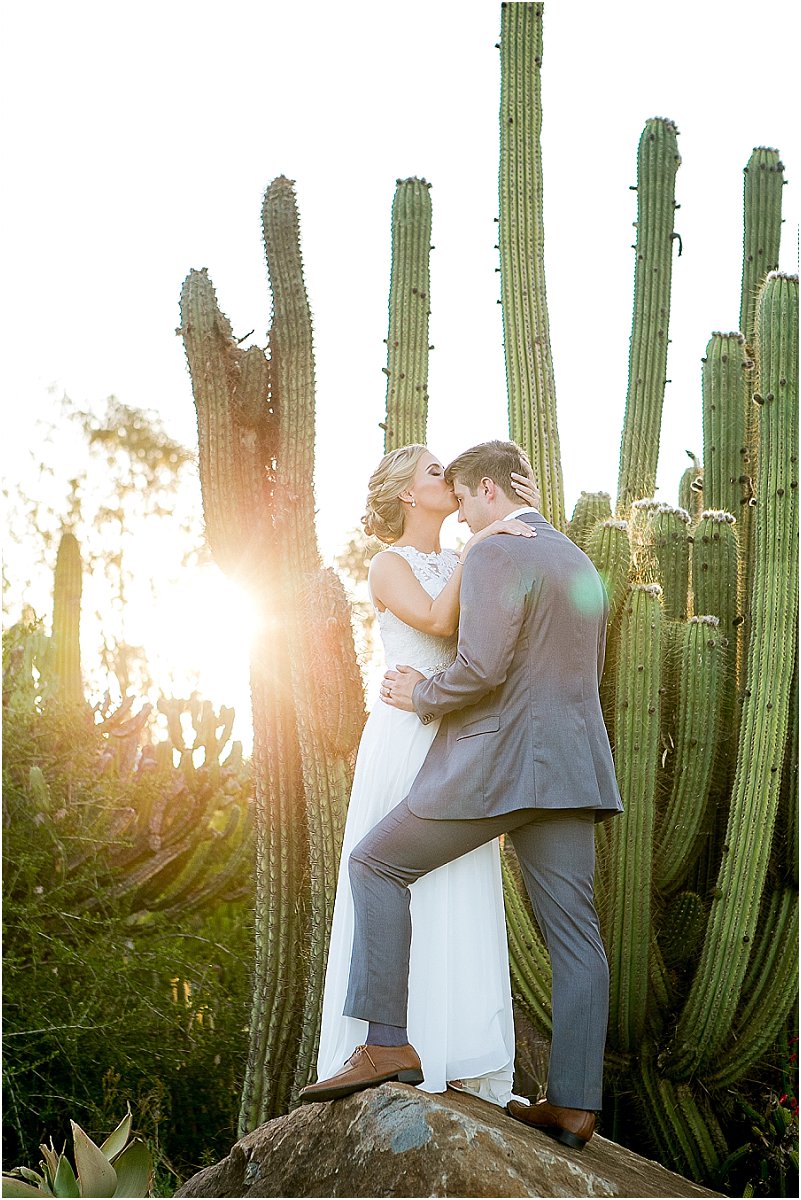 Ons fotograaf (Maryke Venter) is fenomenaal! Ek is gemakliker agter die kamera, en my man is self nie lief om voor die kamera te wees nie. Sy het ons so op ons gemak gehad, ons het soms vergeet sy was daar! Sy het geweet ons soek iets buite die norm vir ons fotos (die feit dat ons trou kar ‘n Landrover Defender met die naam van Slomo is sê als!) en sy het die perfekte plek gevind. Dit is ‘n verlate vetplant kwekery, wat vreeslik “rustiek” lyk, met massiewe Turksvy bosse en kaktusse wat oor mens uit toring!