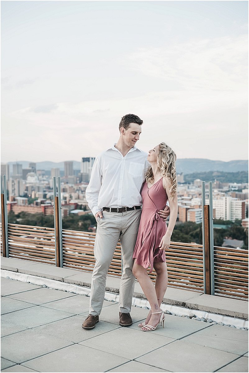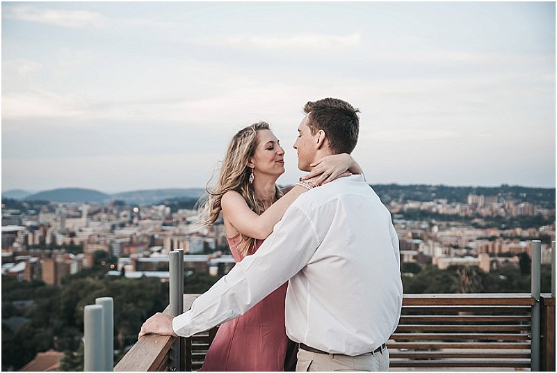 Hierdie fotosessie bied inspirasie vir paartjies wat ʼn oulik en romantiese idee soek vir hul verlowing fotosessie in ʼn stedelike gebied. Baie mense droom van ʼn piekniek op ʼn dak met die uitsigte van die stad. Tobie en Anri het ʼn heerlike piekniek geniet! Die sonsondergang en stadsliggies het so ʼn romantiese atmosfeer geskep. As dit vir jou idillies klink, rol af en geniet Tobie en Anri se verlowing foto’s.