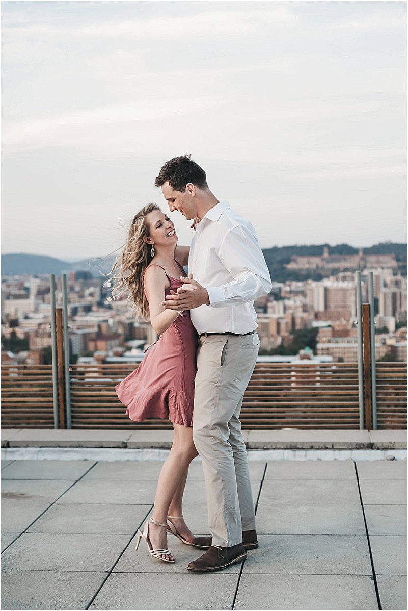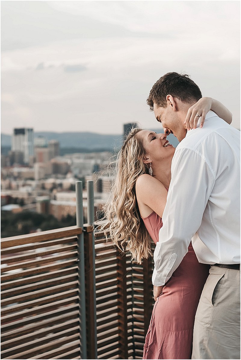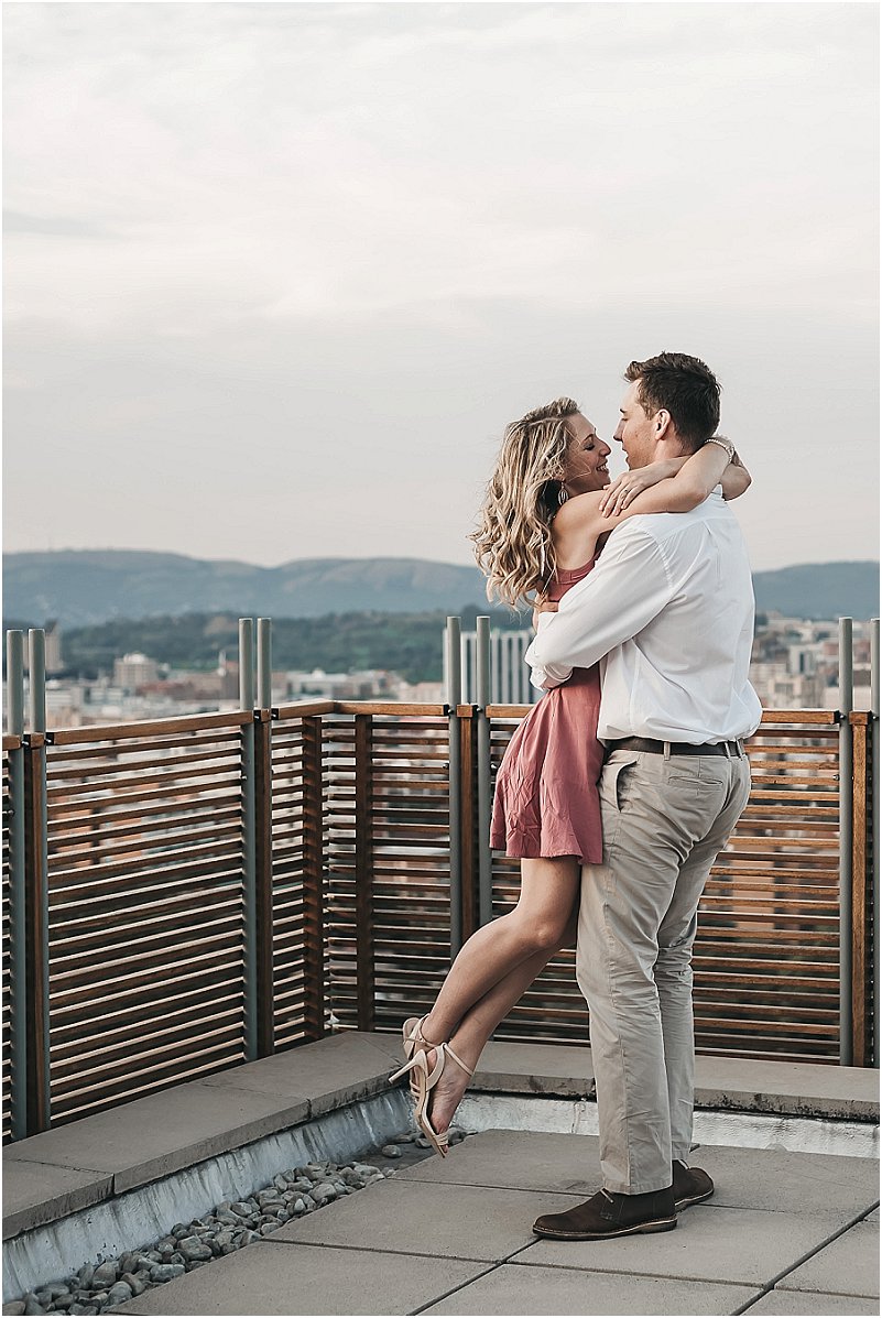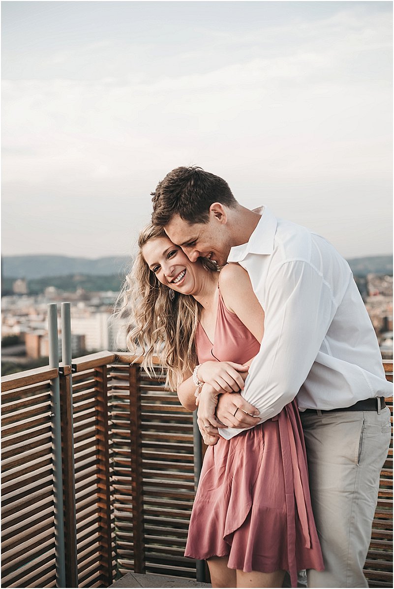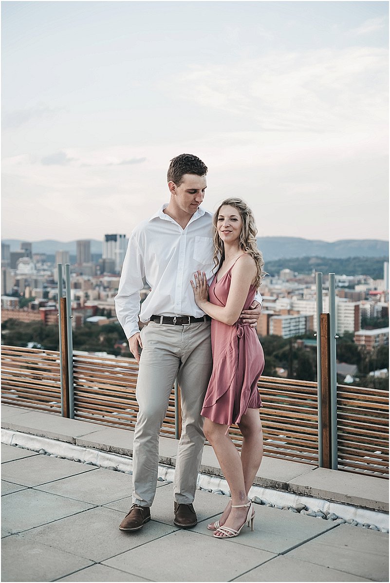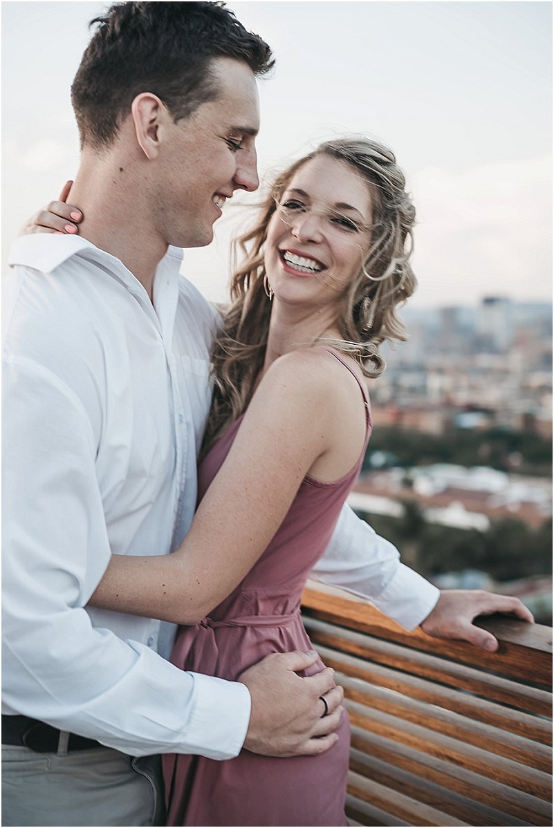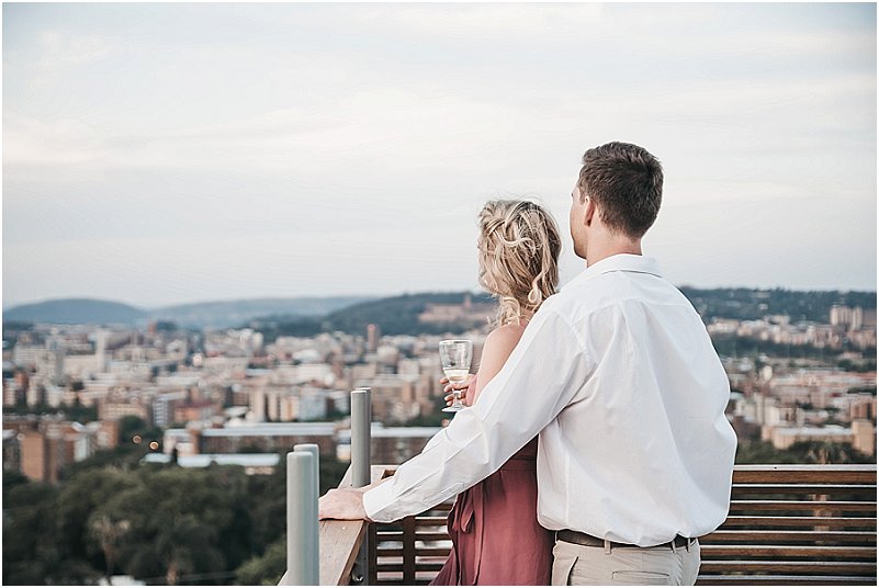 Hierdie fotosessie bied inspirasie vir paartjies wat ʼn oulik en romantiese idee soek vir hul verlowing fotosessie in ʼn stedelike gebied. Baie mense droom van ʼn piekniek op ʼn dak met die uitsigte van die stad. Tobie en Anri het ʼn heerlike piekniek geniet! Die sonsondergang en stadsliggies het so ʼn romantiese atmosfeer geskep. As dit vir jou idillies klink, rol af en geniet Tobie en Anri se verlowing foto’s.