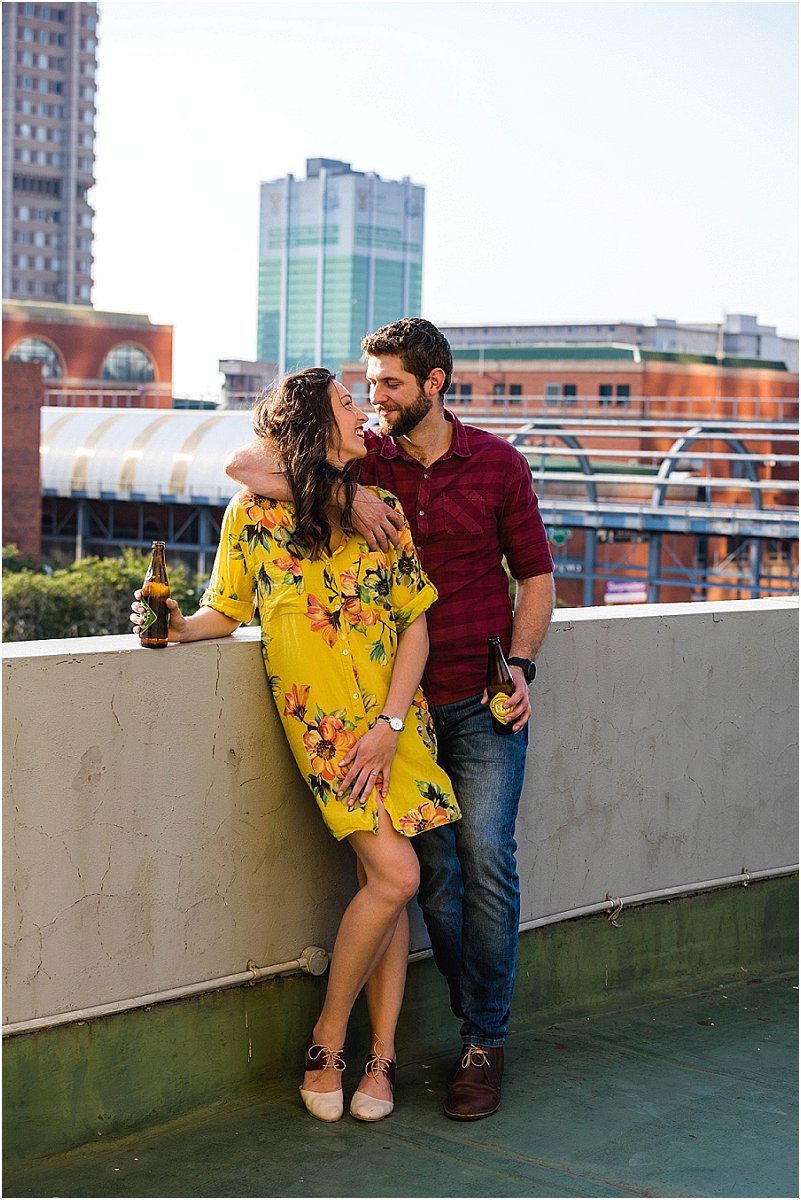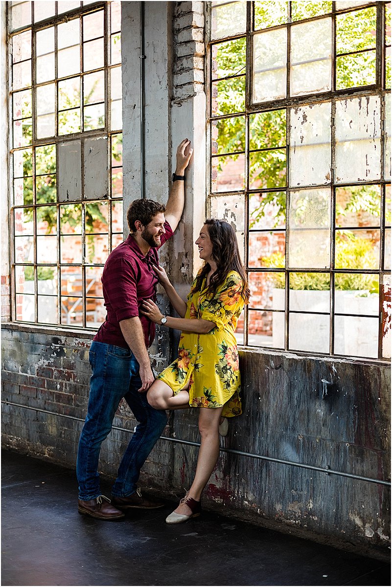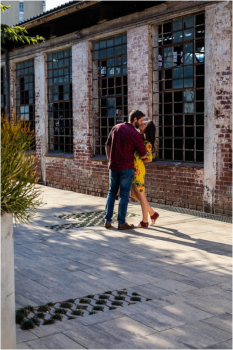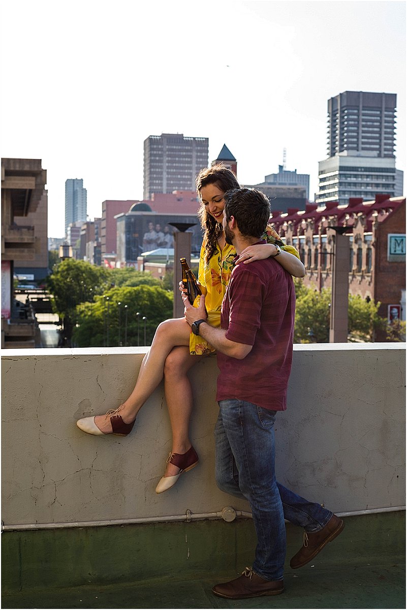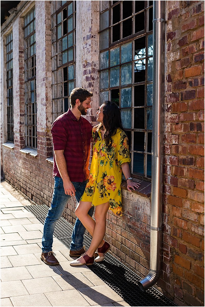 Ons is mal oor die natuur, maar het besluit om dit vir die troudag te los. Ons was lus om ‘n ander konteks te kies vir die verlowingsessie, iets meer modern en prettig. Ek was die hele tyd somer al lus vir iets geel en het toe vir my die rokkie gekies en besluit om radikaal te gaan met ons kleure! (Wat op die ou end heel goed gewerk het saam met die graffiti op die mure!) Daar was ‘n trou onthaal by die venue toe ons daar aankom – met ‘n Swart-en-Wit tema! Ek dink die gaste het vermoed ons is daar om hulle te kom vermaak met ons helder kleure toe ons daar verby glip!