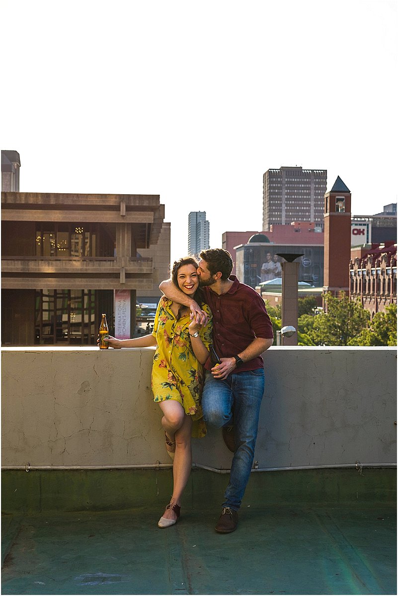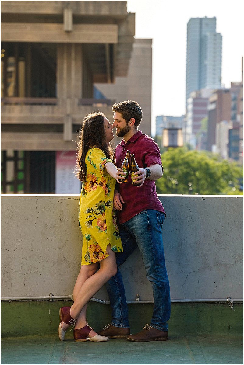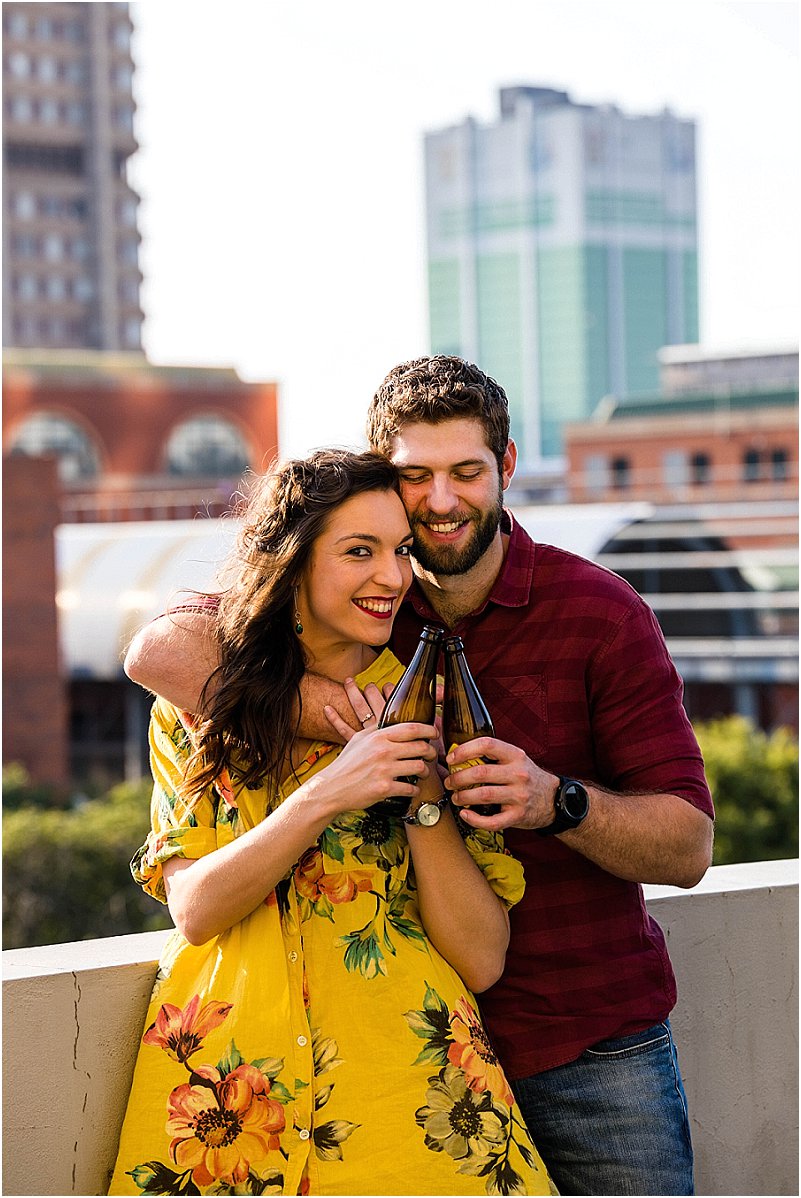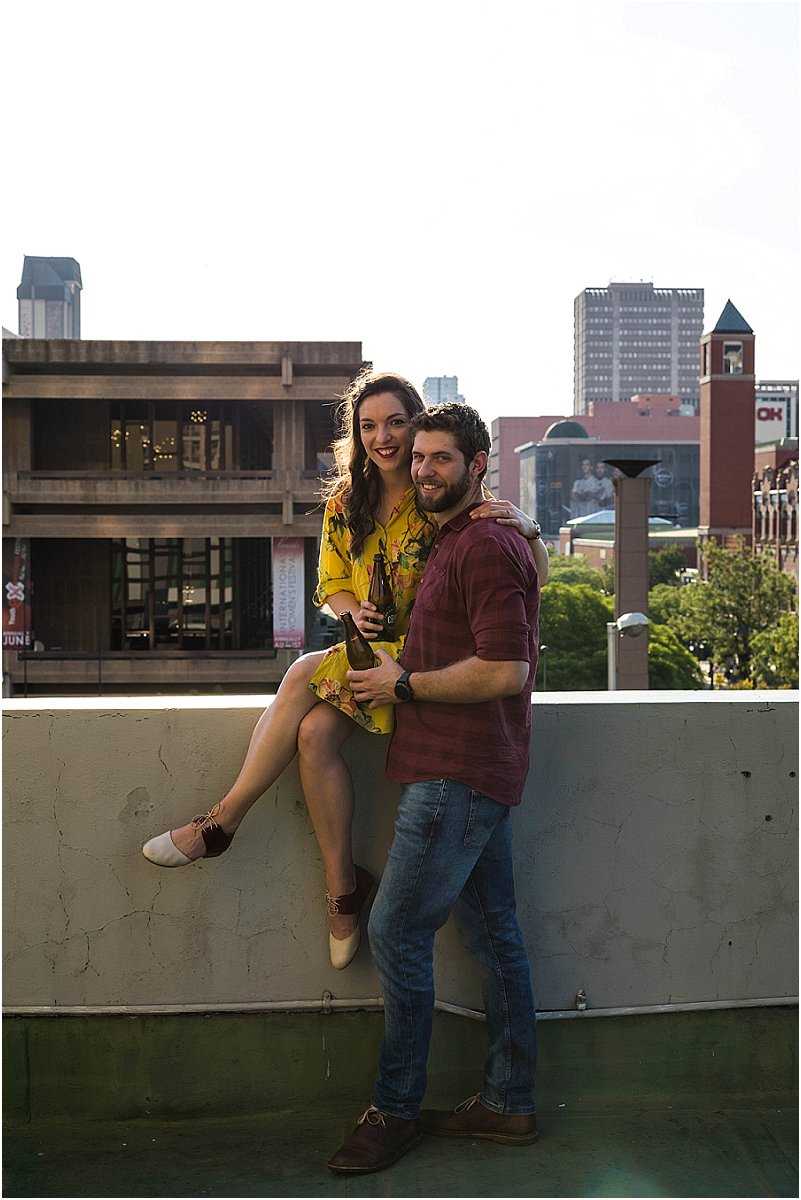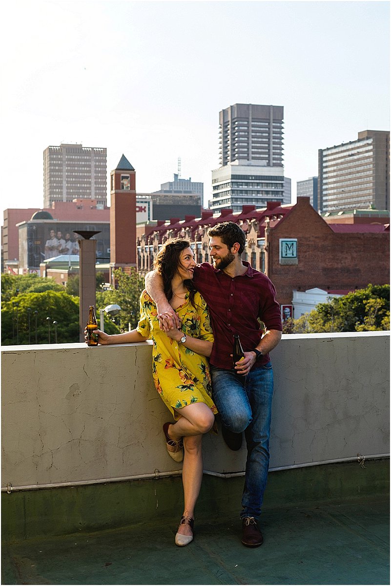 Ons is mal oor die natuur, maar het besluit om dit vir die troudag te los. Ons was lus om ‘n ander konteks te kies vir die verlowingsessie, iets meer modern en prettig. Ek was die hele tyd somer al lus vir iets geel en het toe vir my die rokkie gekies en besluit om radikaal te gaan met ons kleure! (Wat op die ou end heel goed gewerk het saam met die graffiti op die mure!) Daar was ‘n trou onthaal by die venue toe ons daar aankom – met ‘n Swart-en-Wit tema! Ek dink die gaste het vermoed ons is daar om hulle te kom vermaak met ons helder kleure toe ons daar verby glip!