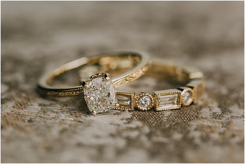 Gerhard het baie moeite met my verloofring gemaak. Die ring is in Pretoria gemaak (Beaudell Jewellery), maar die diamant is in Kaapstad gekoop (Cape Diamonds). My ma het die diamant saam met haar opvlieg (terwyl hy nie kon verseker word as los diamant nie), tydens ʼn kuier aan my ouma. Sy was natuurlik baie versigtig gewees om dit nie te verloor nie en het dit in haar stewels wat sy aangehad het opgevlieg! Die trouring het ek en my ma ontwerp en laat maak in die Kaap, weer by Cape Diamonds.