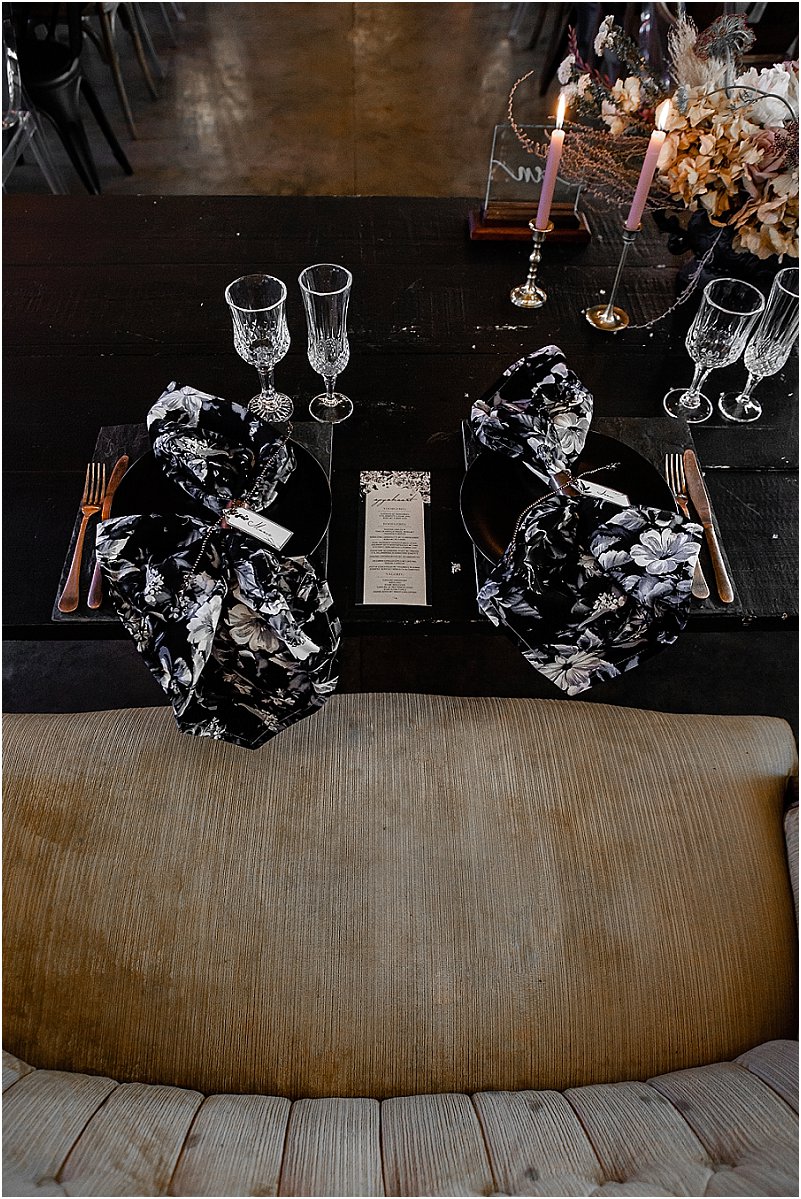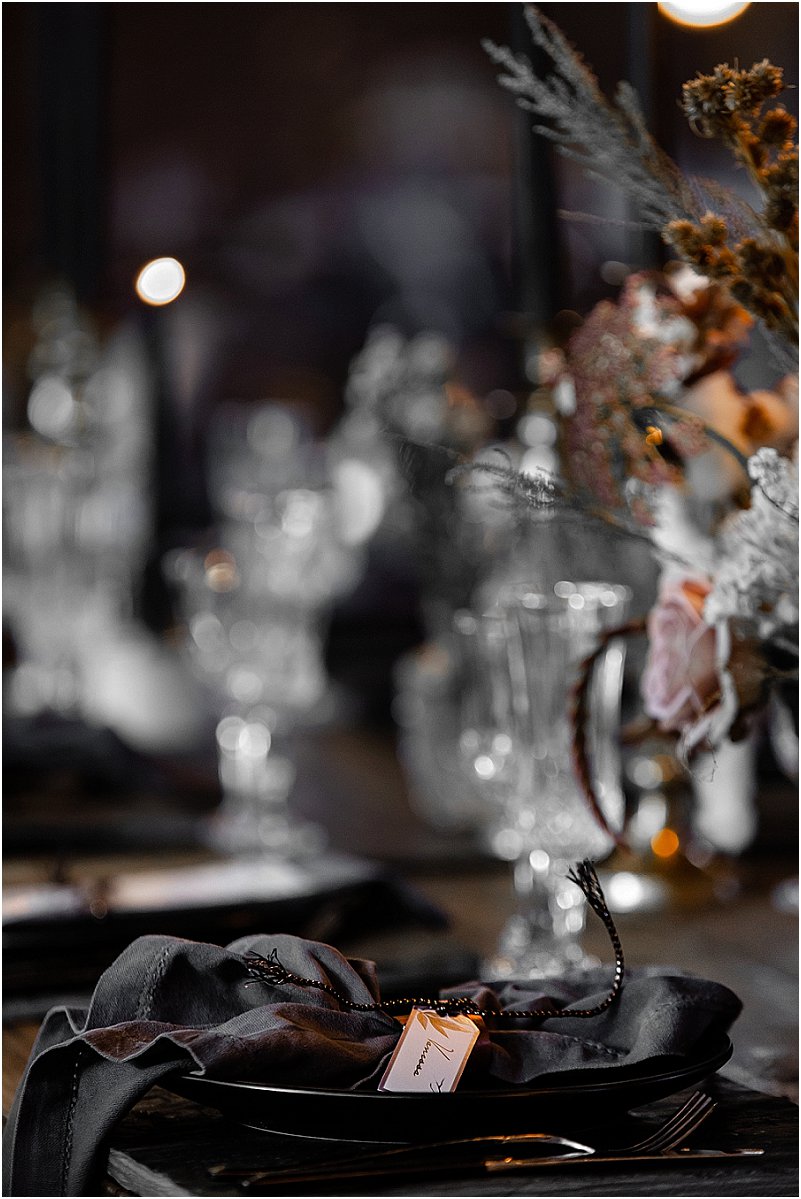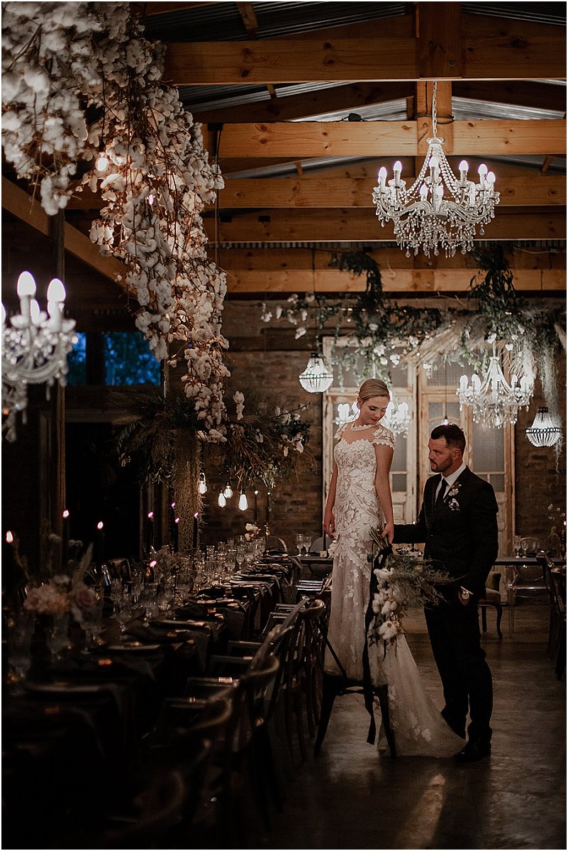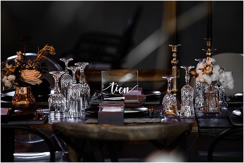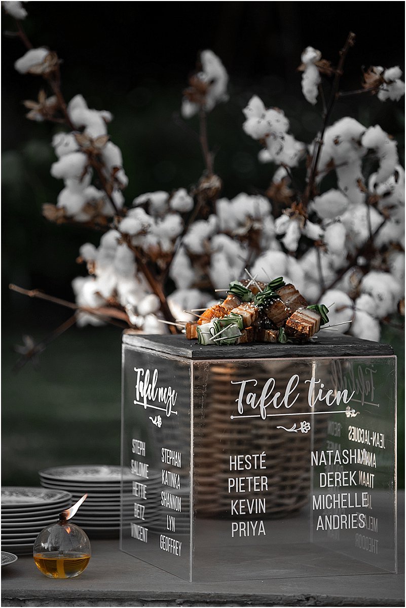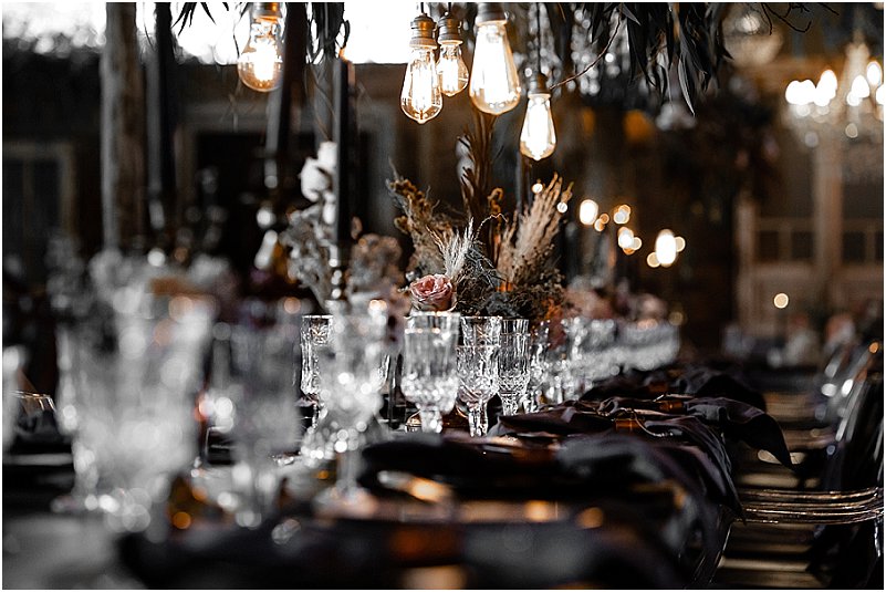Ons inspirasie vir die dekor was formele, donker kleure met ‘n romantiese Europese gevoel. Ons het van die begin af met Michelle saamgewerk om elke detail van ons troue eiesoortig en ‘buite die gewone boks’ te maak.