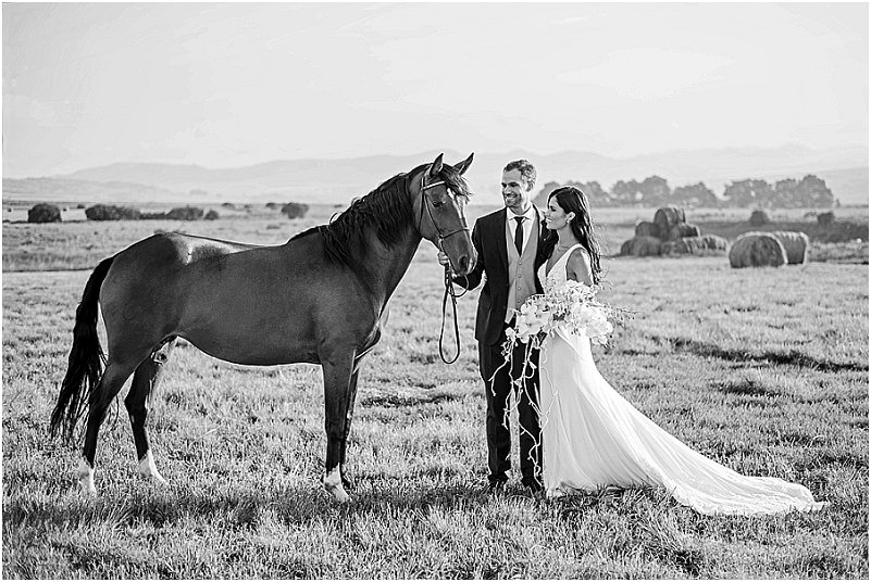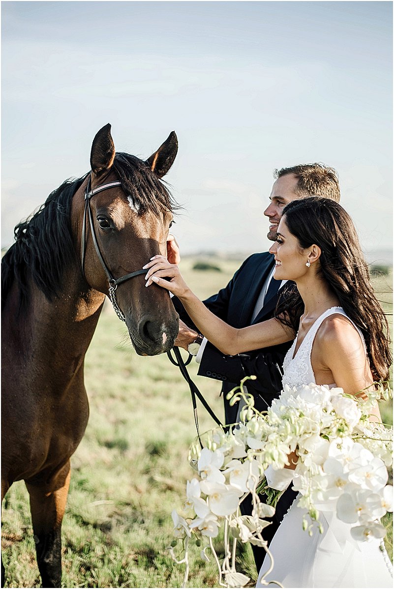 Die paartjie, Muntingh en Marize, se liefde vir perde het hul by hul trou venue gebring waar hul elegante Vrystaat plaastroue gevier was. Daar is ongelooflike foto’s met die paartjie met die ‘n perd wat so kosbaar is. Hulle het die elemente van elegansie en plaas atmosfeer perfek kombineer