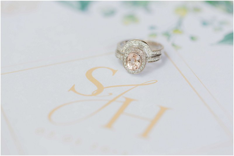 Terwyl ek na verskillende verloofringe gekyk het, het ek verlief geraak op die morganietsteen omdat pienk my gunsteling kleur was. Hendri het toe my ring laat ontwerp met diamante in ʼn halo-instelling in witgoud.