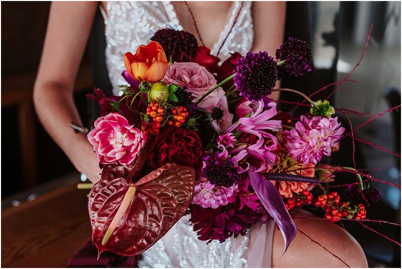 Ons inspirasie vir die fotosessie was vroulike entrepreneurs wat saamwerk. In die trou-industrie is dit maklik om mekaar as kompetisie te sien. Ons wou dus die boodskap oordra dat indien vrouens saamwerk, ons soveel meer kan vermag. Ons het prettige kleurskema, met ‘n misterieuse gevoel gekies.