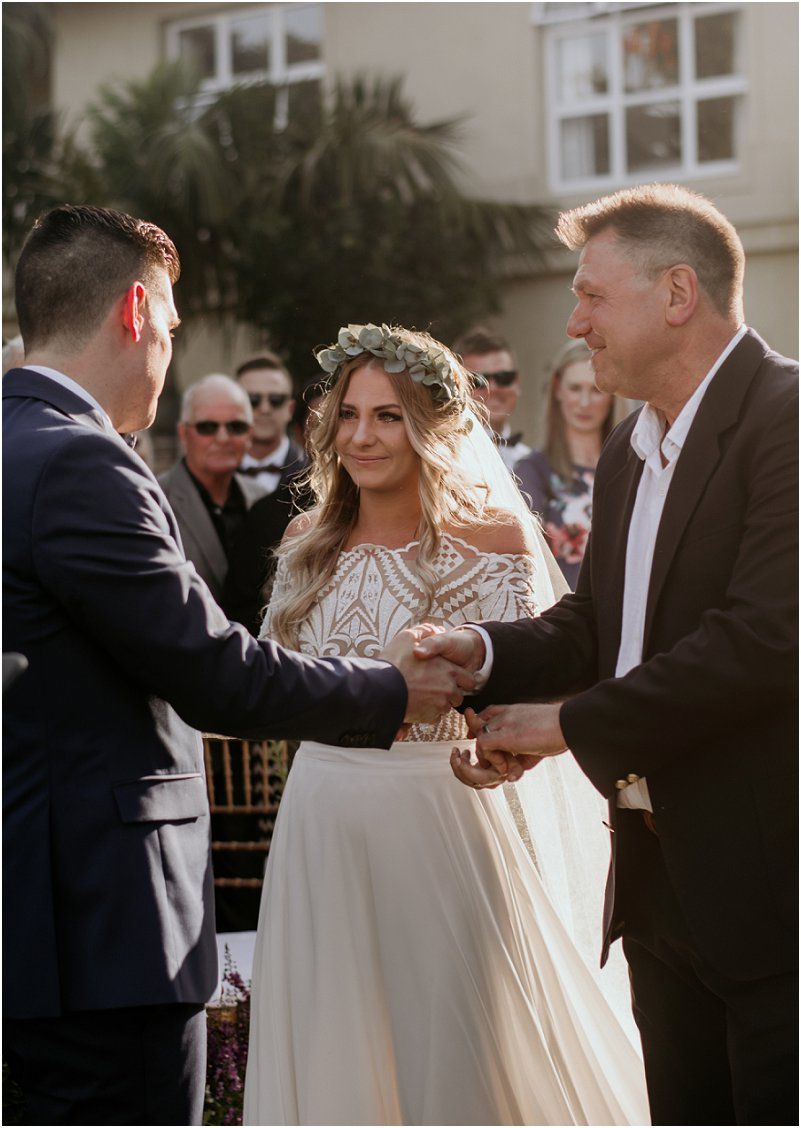 Richard en Emma se visie vir hul troudag was ‘n klein en intieme geleentheid, ingekleur met liefde en die mense waarvoor hulle die meeste omgee. Hulle het die mees perfekte venue gekies om hul visie ‘n realiteit te maak. Die paartjie se gaste kon gemaklik sit en kyk hoe hulle ewige liefde aan mekaar verklaar, terwyl die asemrowende see-uitsig die prentjie afrond. Richard en Emma het boonop hul blomme en die opstelling van hul dekor self gedoen! Let veral op na die blomme op die tafels; Uitgedroogde, fyn blomme in lang deurskynende vase – hoe pragtig! Emma se keuse van trourok, haar blomkroon en die paartjie se keuse van venue en dekor is dié van ‘n elegante, ietwat boheemse, plat op die aarde paartjie.