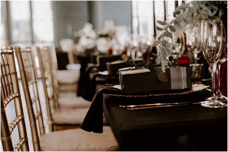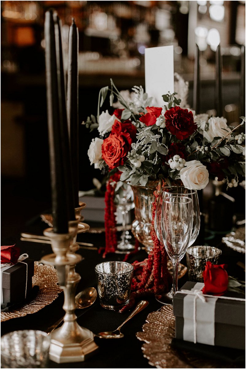 Ons wou iets romanties en intiem gehad het, asof elke persoon wat daar is, op ʼn spesiale afspraak is. Die dekor is ʼn mengsel van ons gunsteling goed, bv. sagte kleure en teksture, asook en ons gunsteling fliek saam – La La Land. Goud is ook deel van die dekor, omdat Jade mal is oor Beauty and the Beast, en daaruit kom die rooi roos. Die swart en rooi is ook uit Ruan se obsessie met Phantom of the Opera. Op die tafels was daar ʼn handgeskrewe brief vir elke gas, wat ons met ʼn was stempel geseël het.