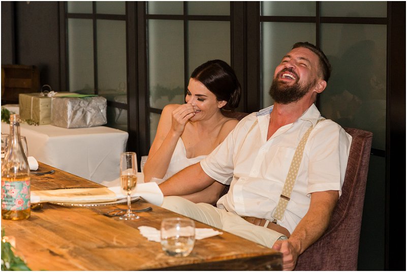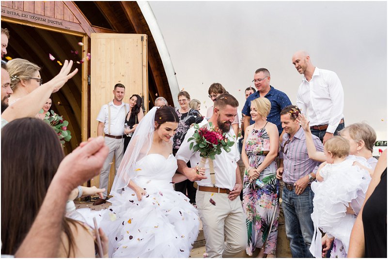 Ek wou nie die tradisionele troue hê nie – daar was geen platejoggie of dansvloer nie. Ons het toesprake gehou en ʼn heerlike aandete gehad. Toe die ouer gaste huis toe gegaan het, het dit uiteraard geëindig in “shots” en selfgemaakte dansvloer en platejoggie.