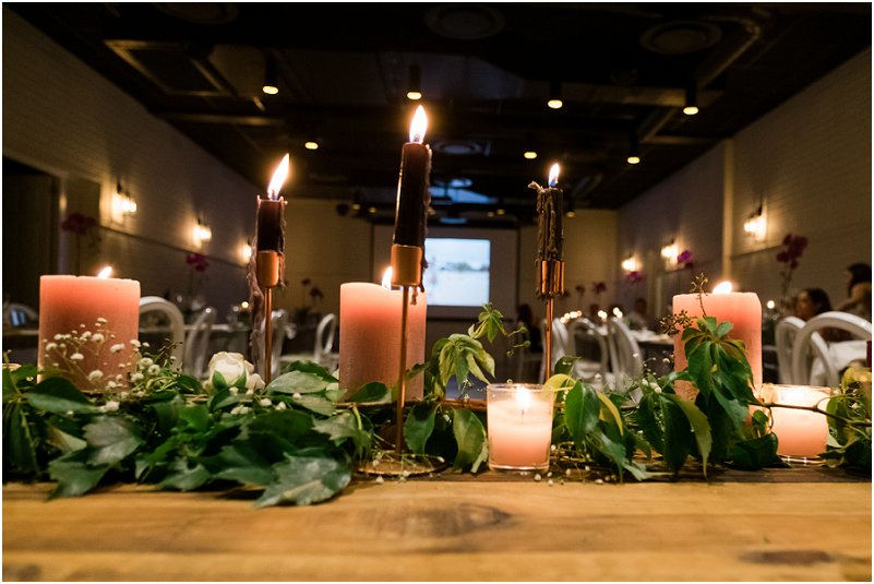 Ons kleurskema is op bloos en sjampanje gebaseer, met ʼn eenvoudige Frans-geïnspireerde elegansie. Ons het lang houttafels gehad met groen en wit rose as tafellopers en 2 boorde op elke tafel. Die styl moet jul persoonlikheid verteenwoordig. Moenie probeer om iets te doen wat nie julle is nie.