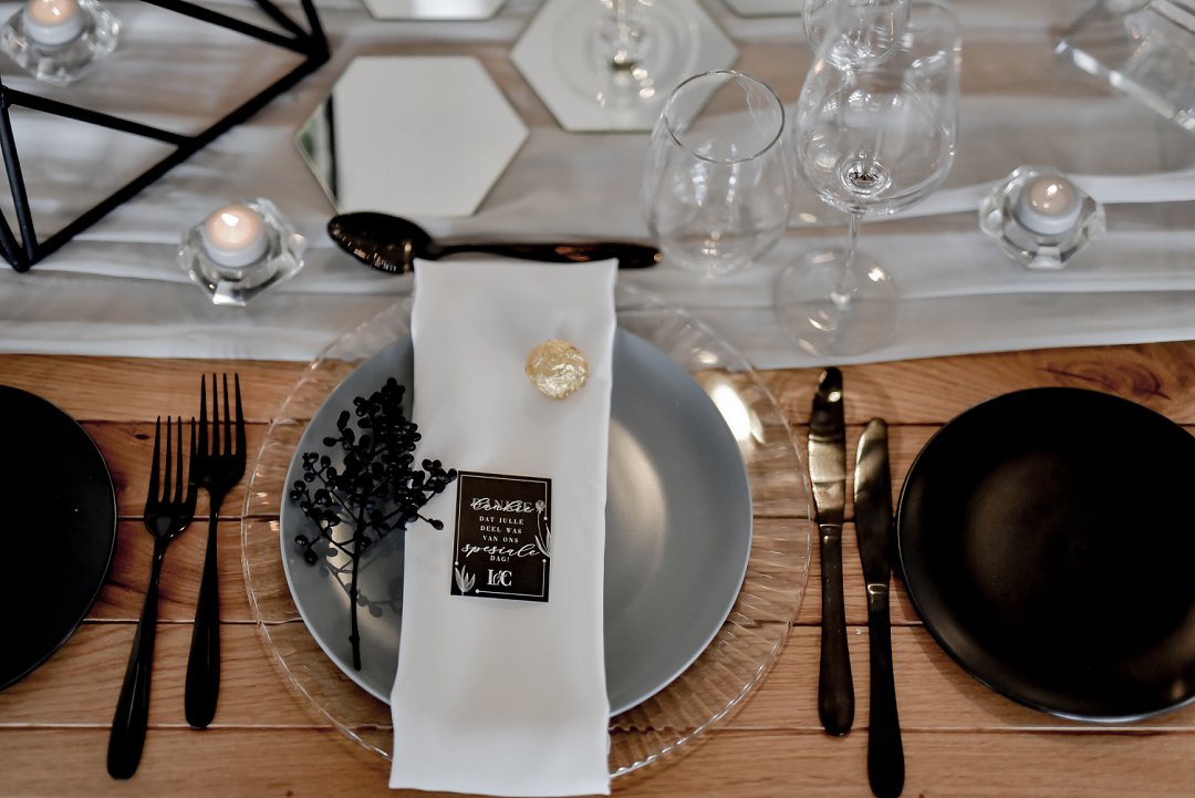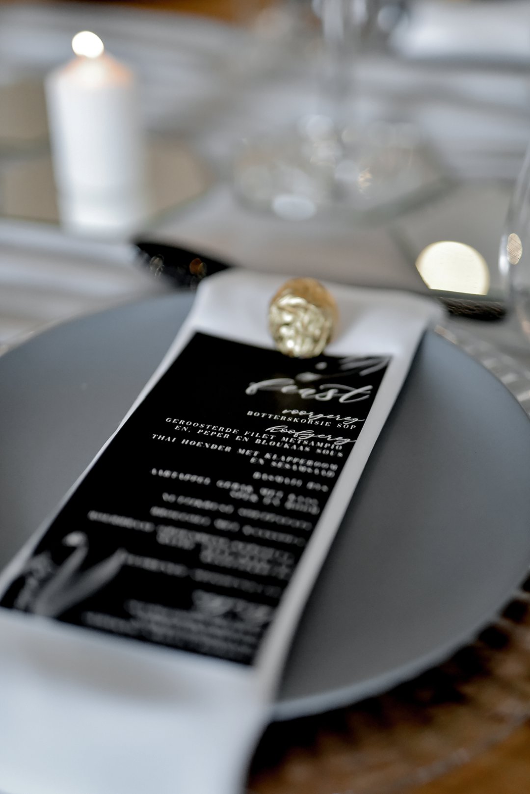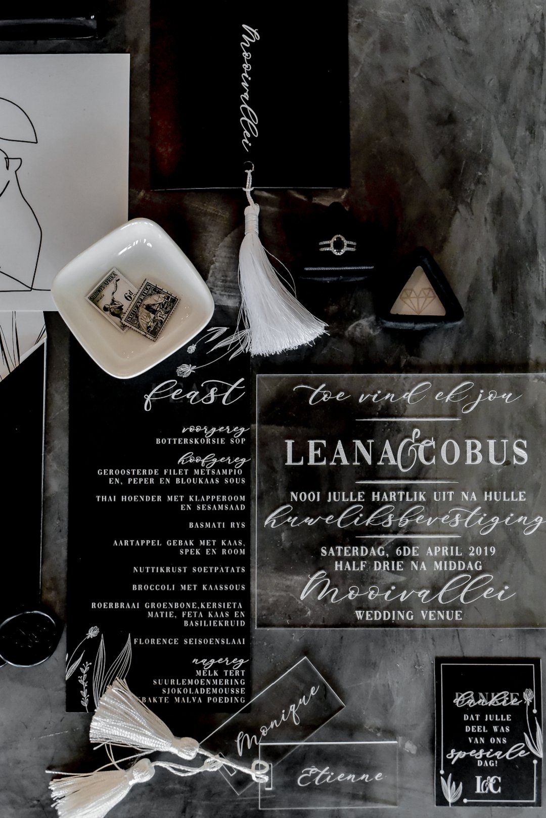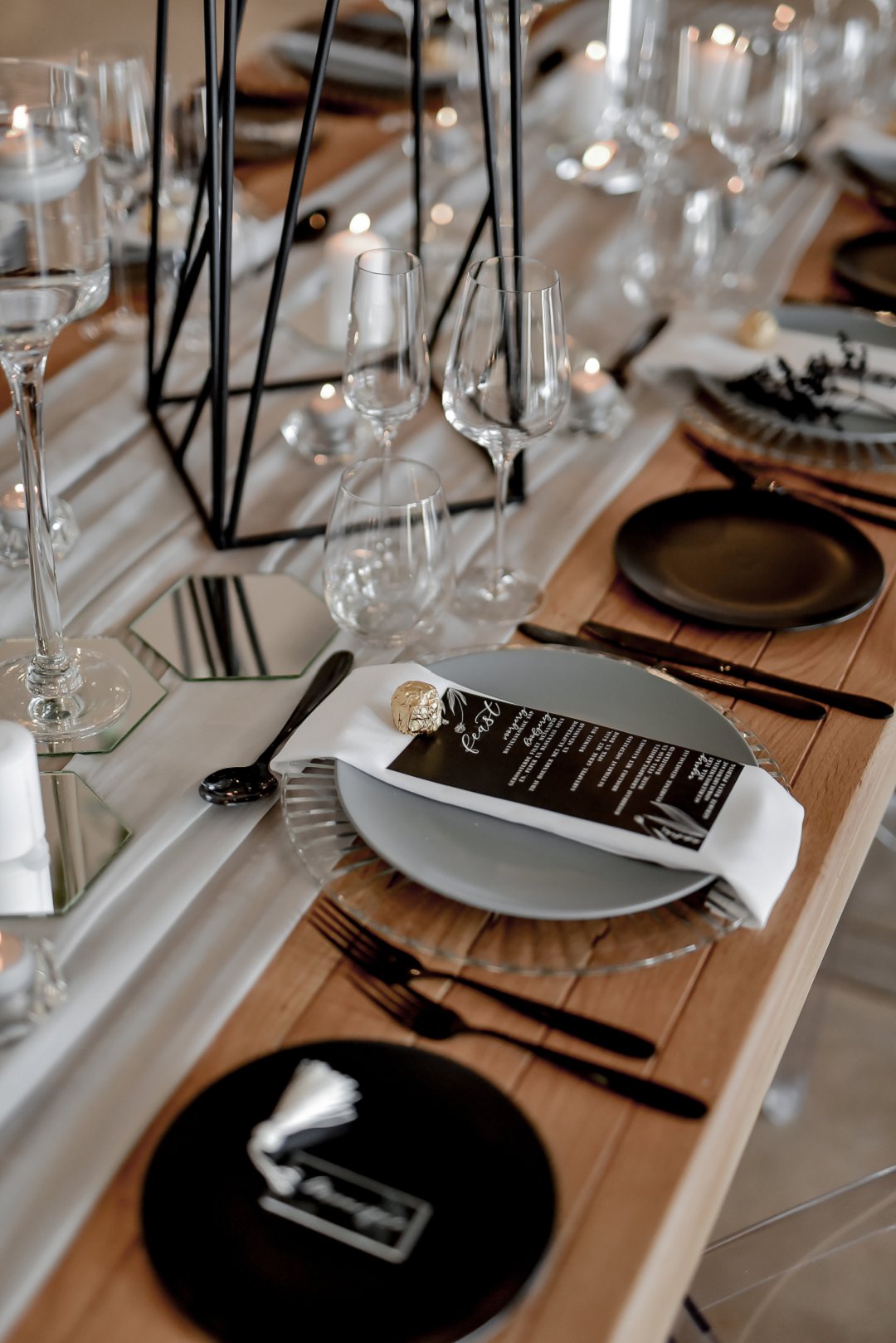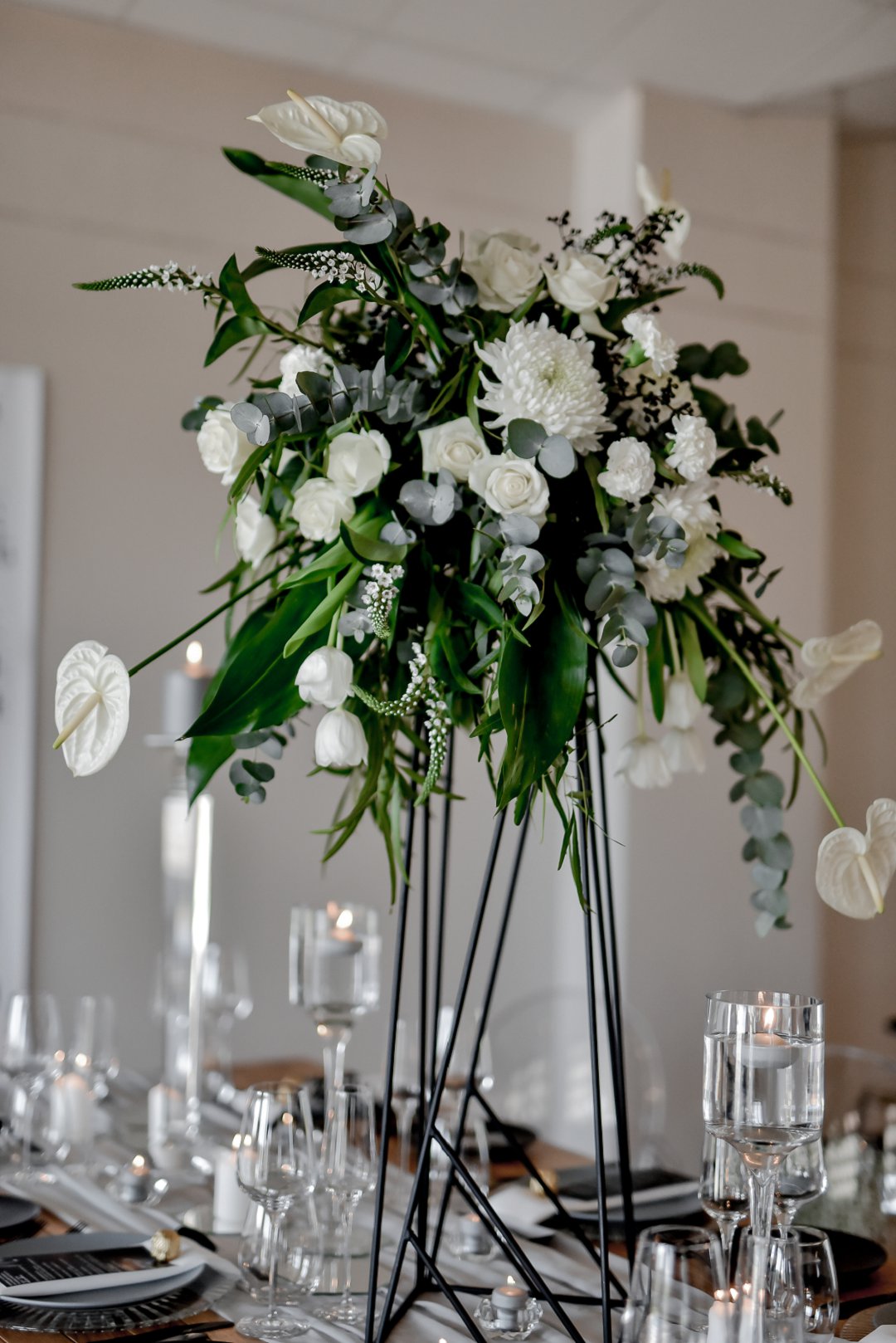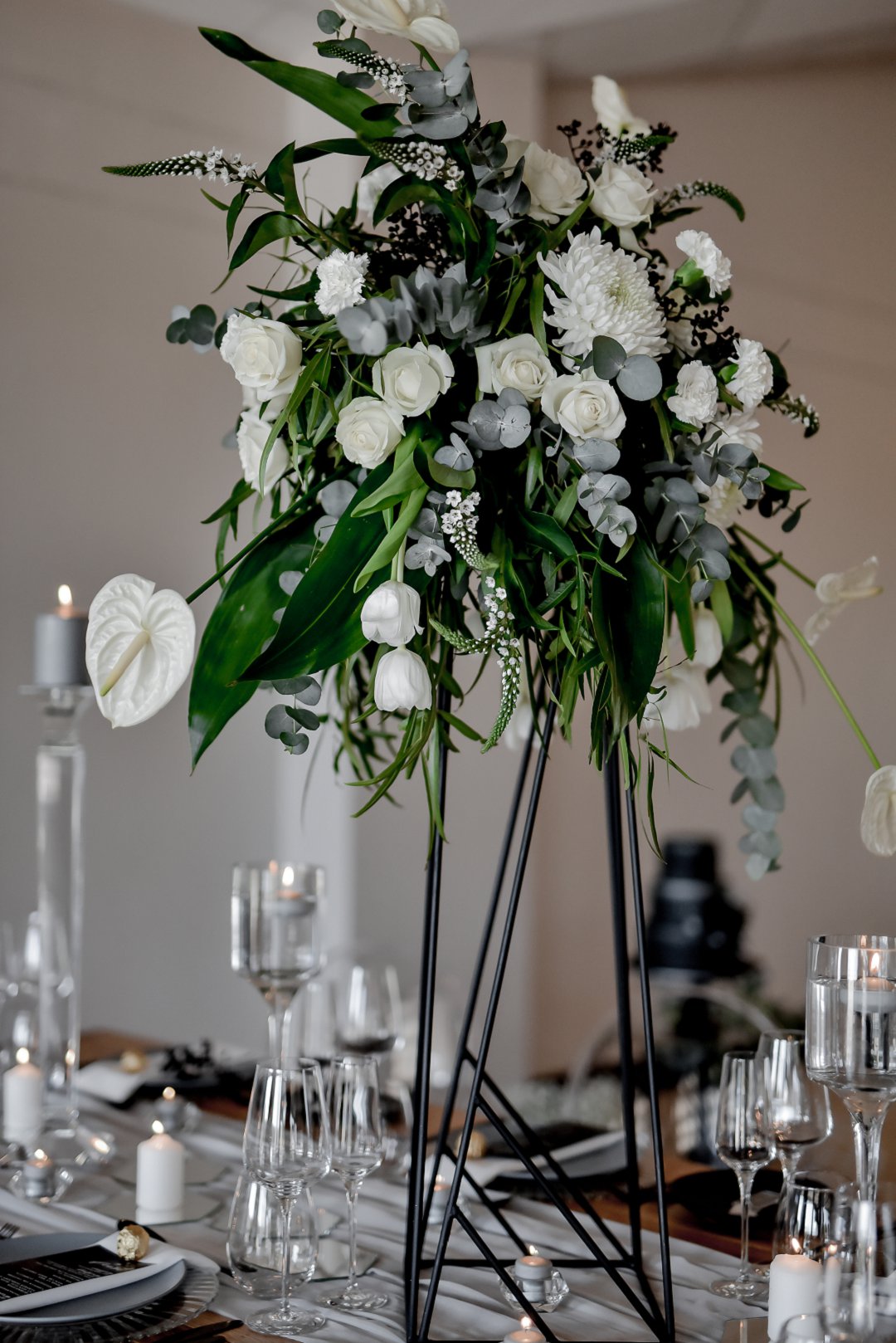 Tendense kom en gaan – maar ‘n klassieke swart-en-wit troue sal altyd pragtig wees. Ons het besluit om ‘n tikkie smaraggroen by te sit. Ons wou graag ‘n elegante, klassieke gevoel skep met moderne elemente hier en daar.