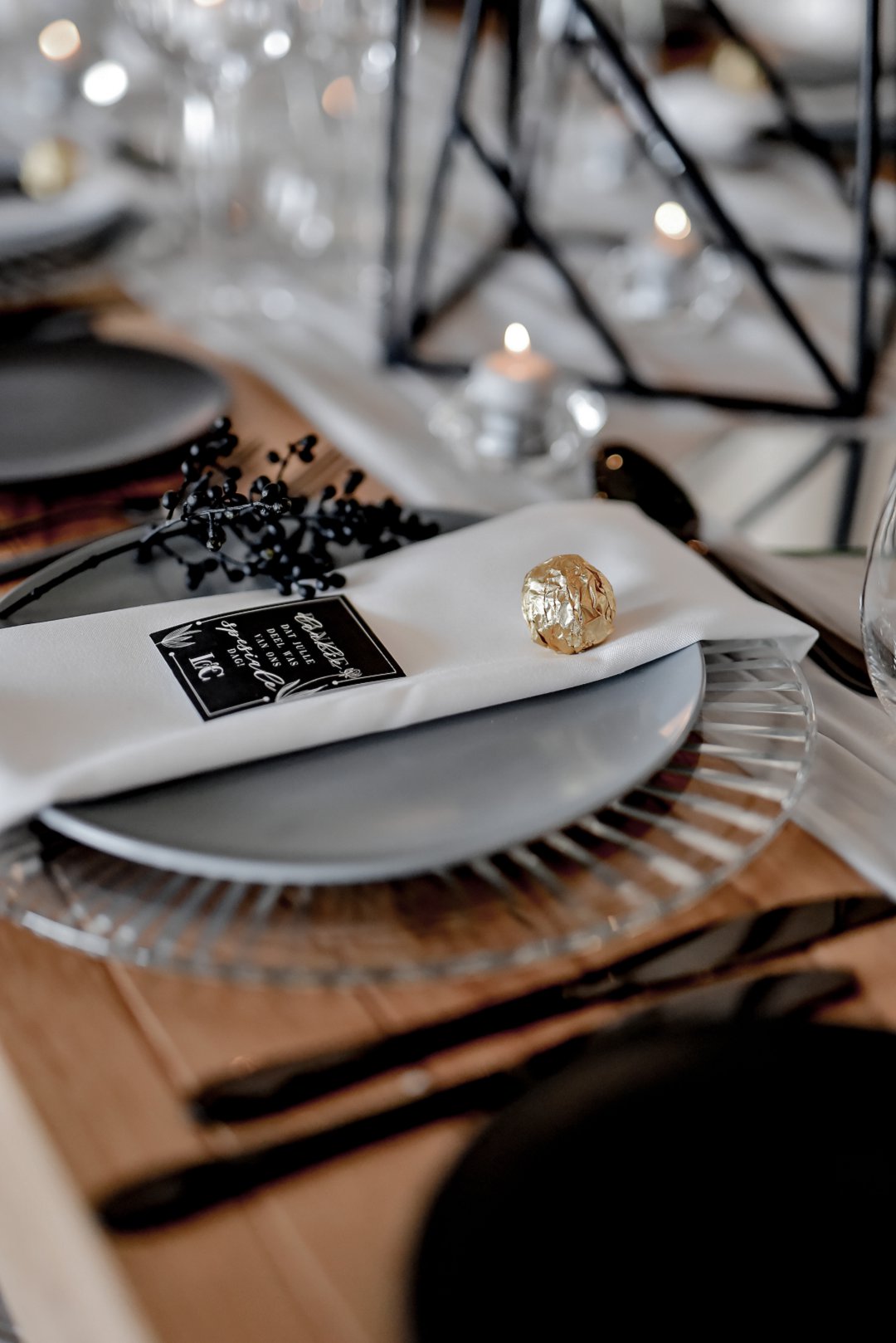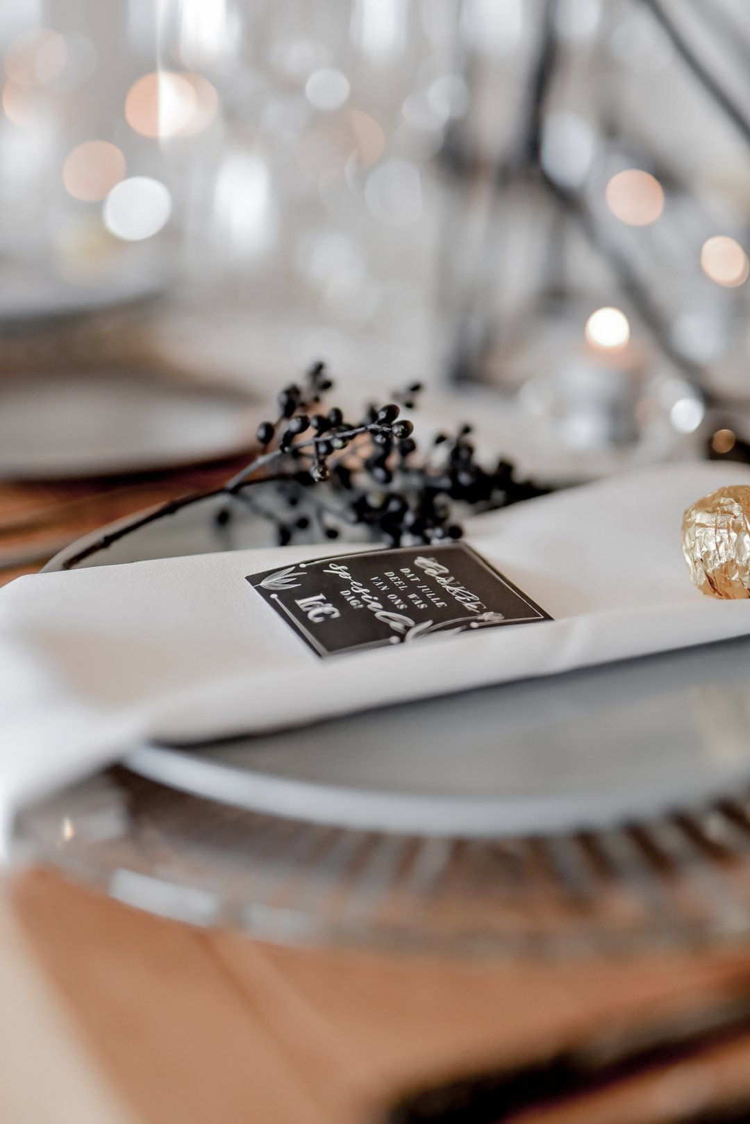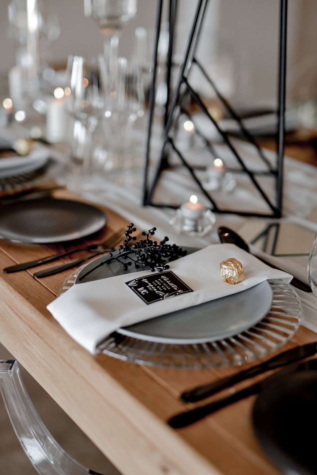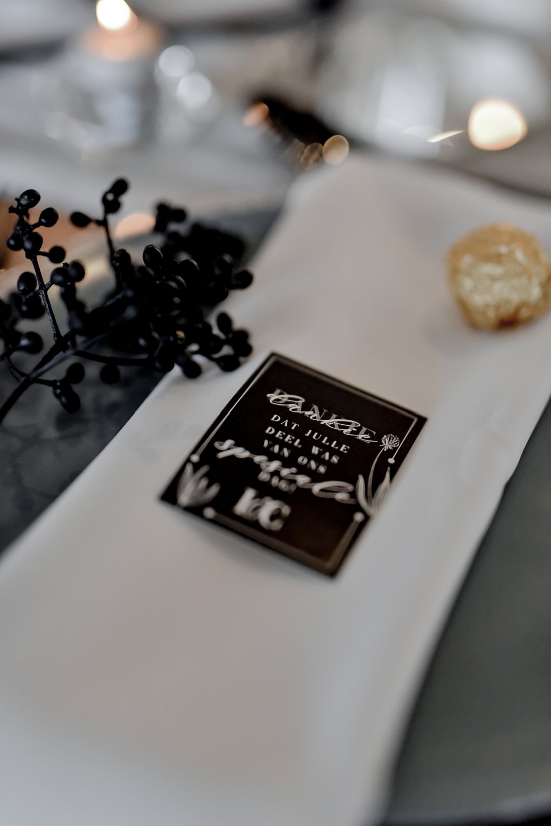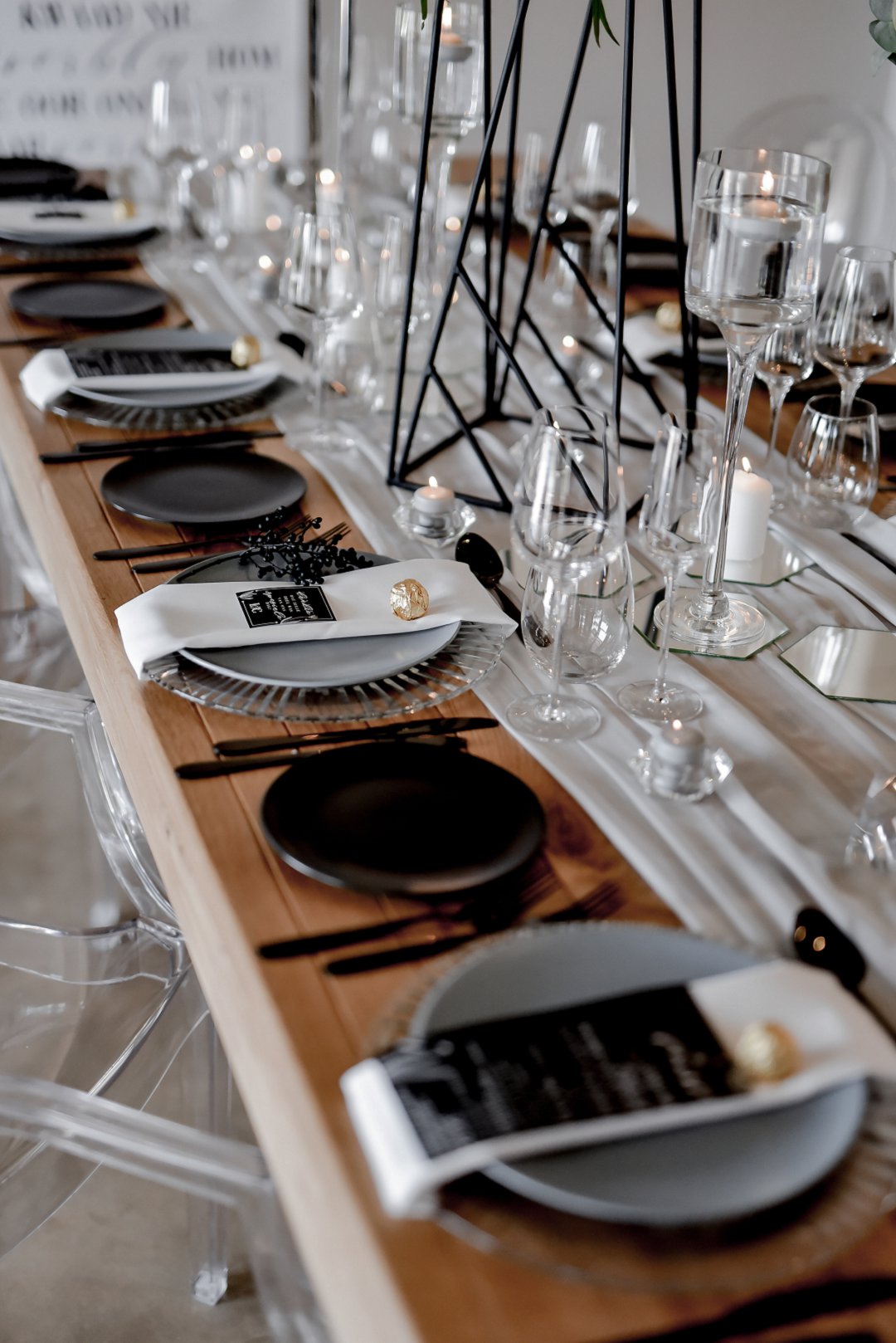 Tendense kom en gaan – maar ‘n klassieke swart-en-wit troue sal altyd pragtig wees. Ons het besluit om ‘n tikkie smaraggroen by te sit. Ons wou graag ‘n elegante, klassieke gevoel skep met moderne elemente hier en daar.