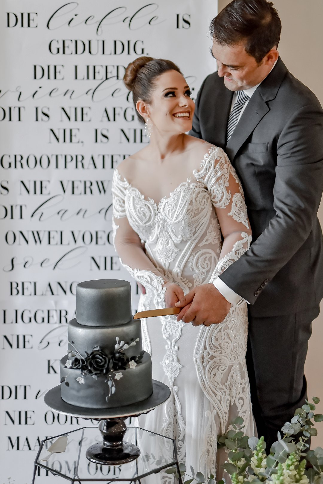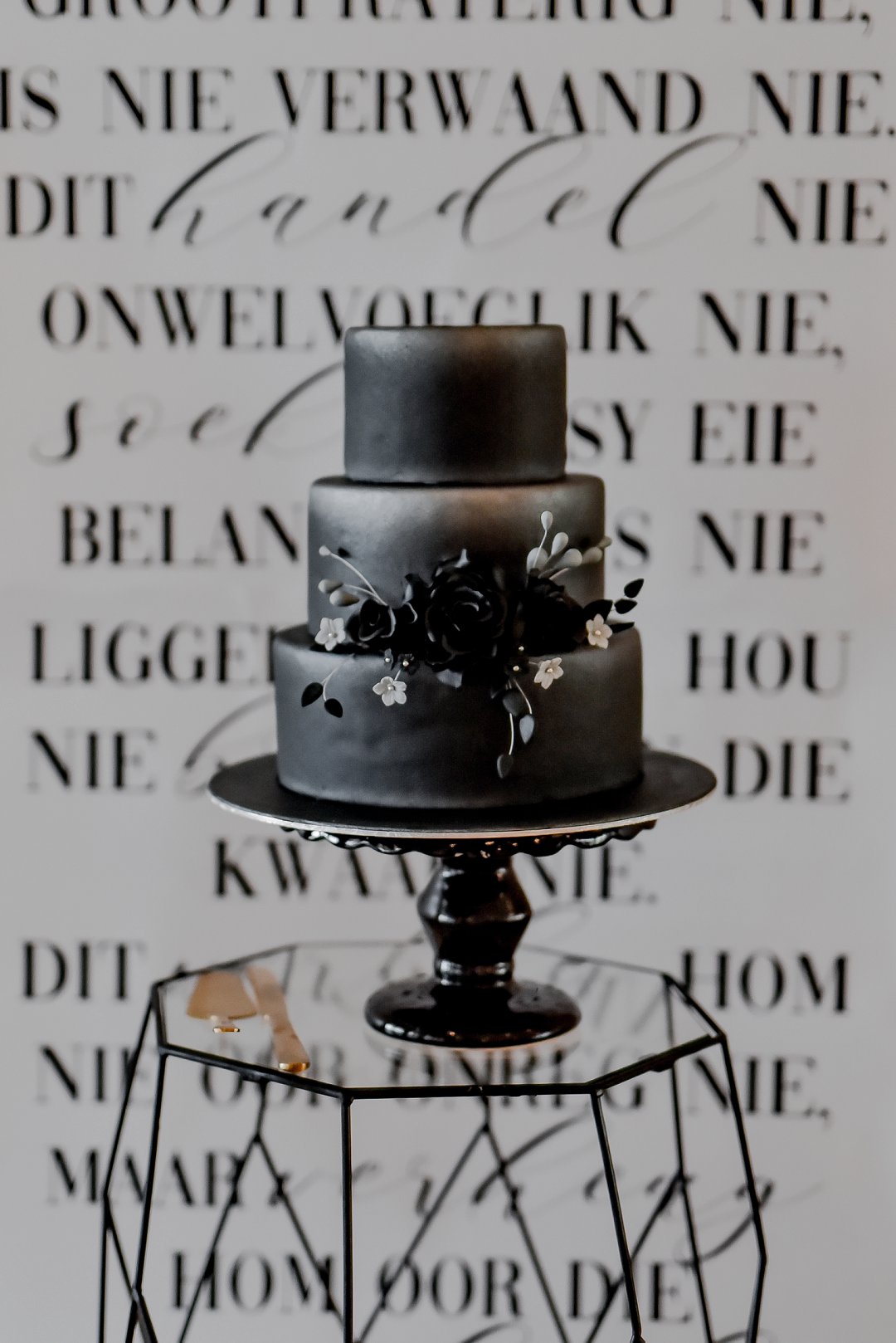 Ons is ook mal oor die swart troukoek. Dit is nou definitief iets wat mens meer van begin sien. Dit gee amper so ʼn effense van ʼn graniet gevoel. As jy opsoek is na fantastiese diensverskaffers vir jou troue, besoek die Mooi Troues Trougids.