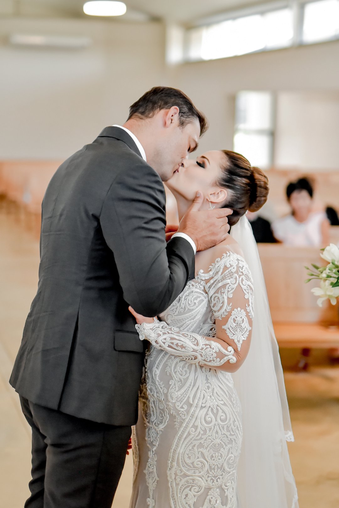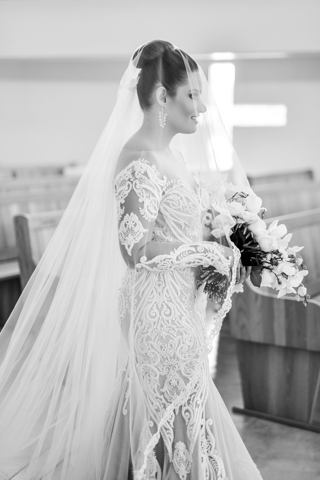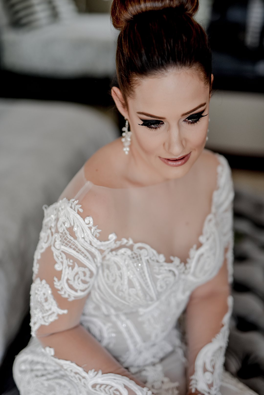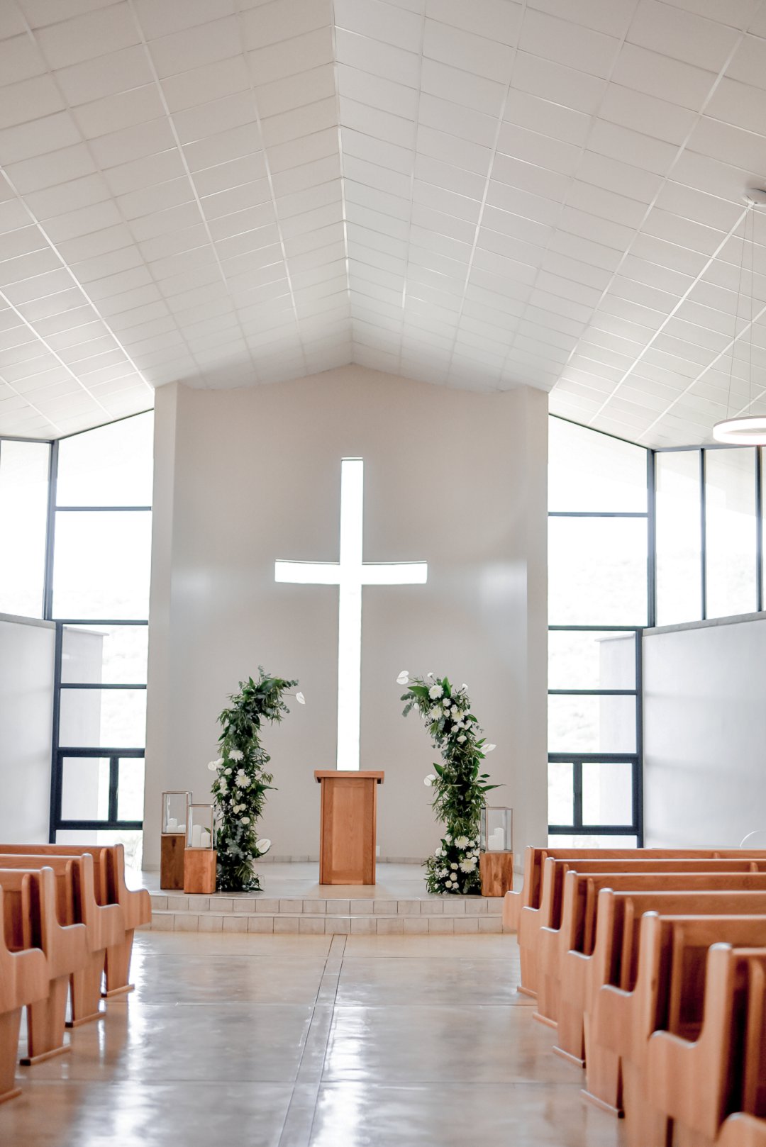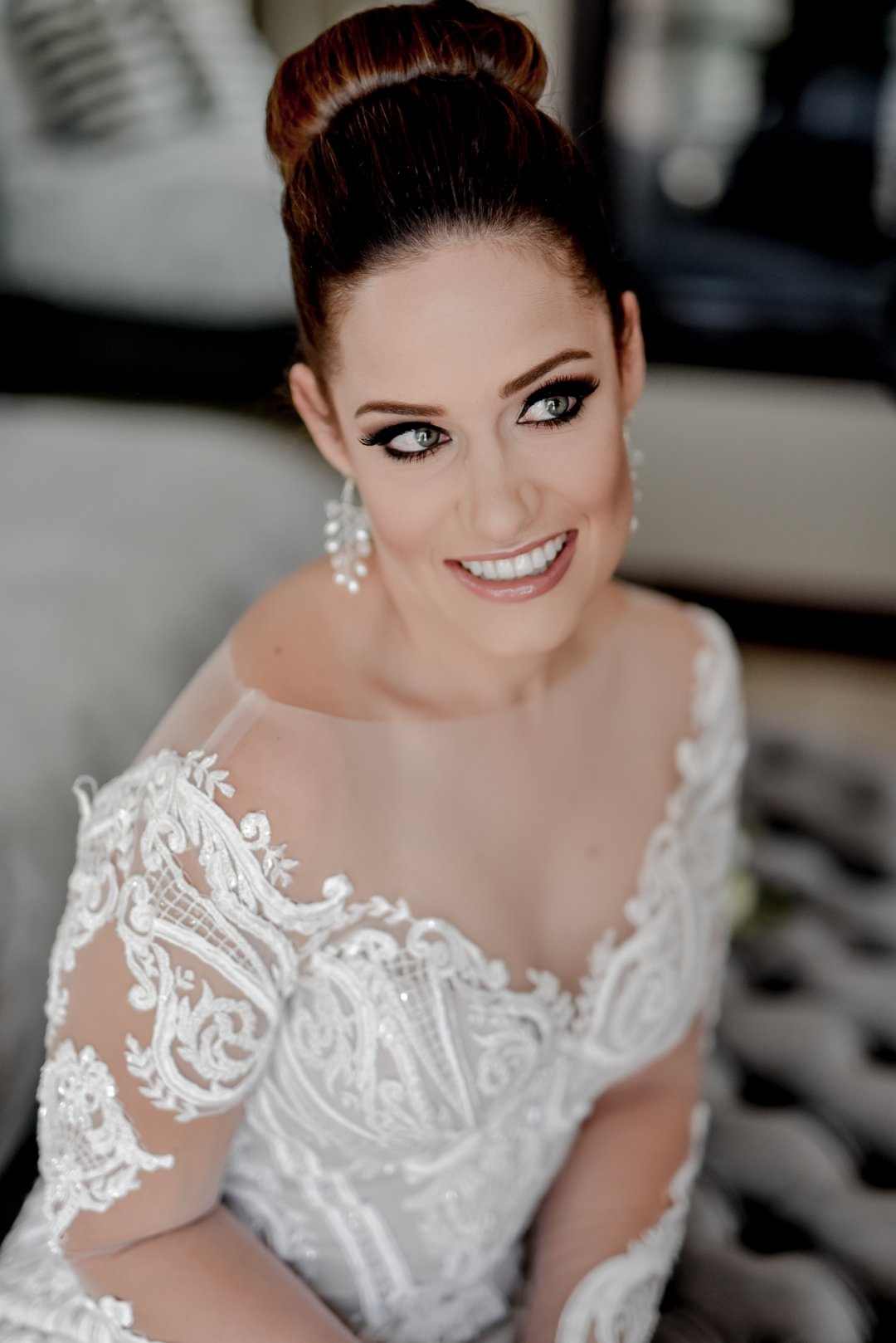 As jy die fotosessie van nader kyk sal jy definitief nie die blomme miskyk nie. Dit is een van die hoofelemente van die dekor. Van die kerk tot in die onthaal. Die handruiker van die model is net so pragtig, mal oor die kombinasie van wit rose en die wit orgideë. Alles werk net so mooi saam.