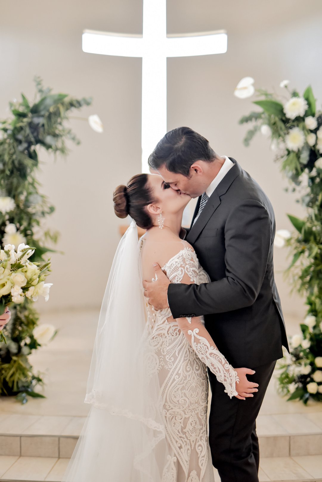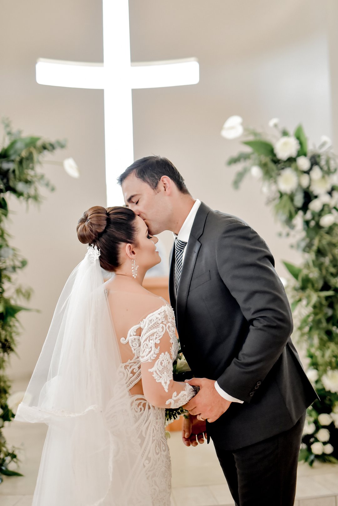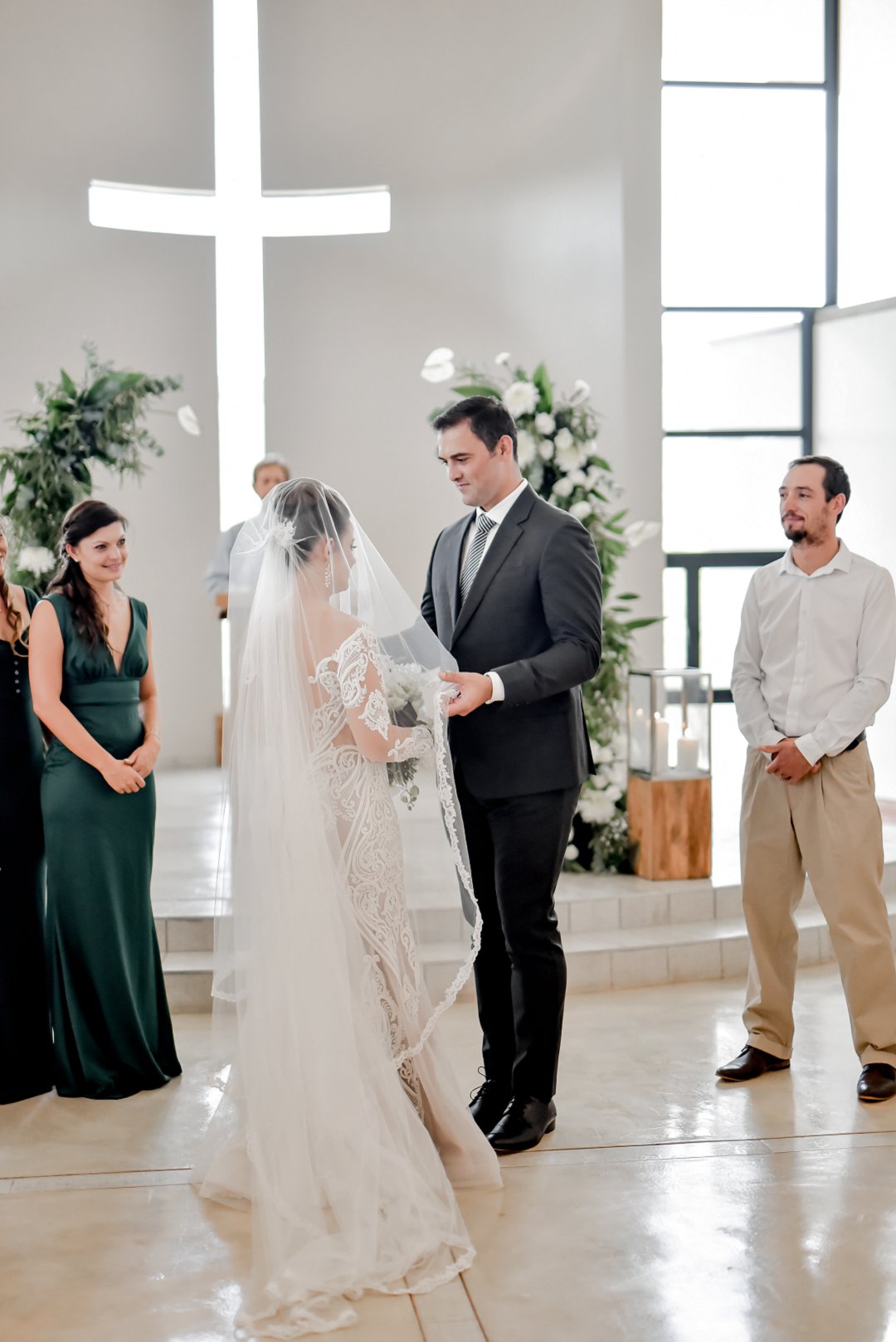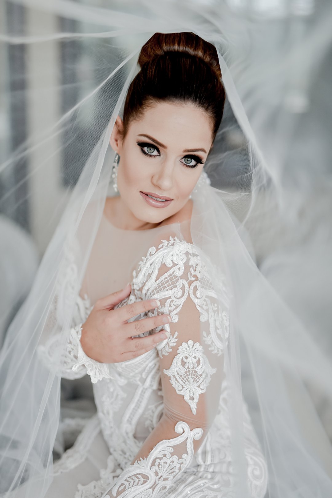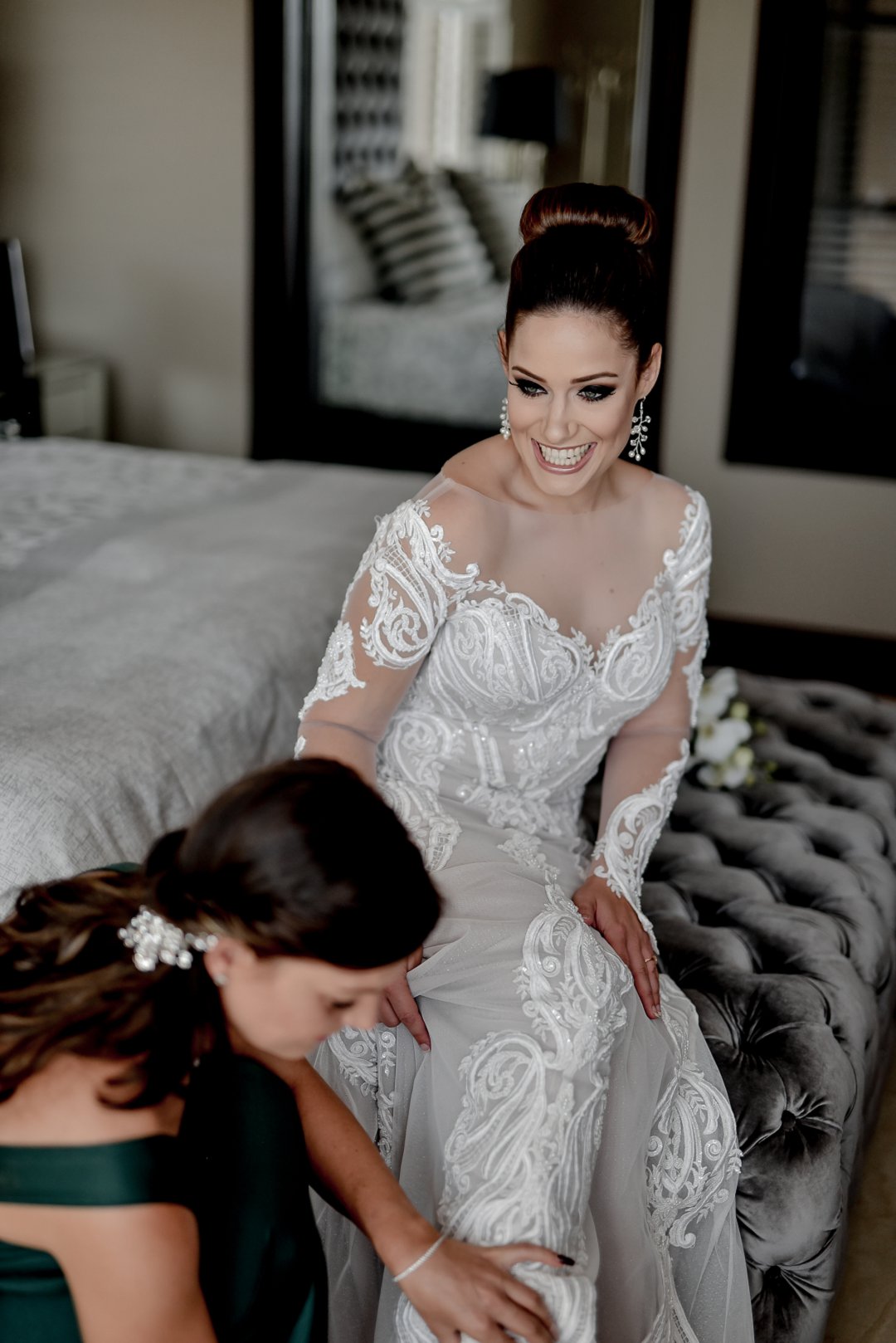 As jy die fotosessie van nader kyk sal jy definitief nie die blomme miskyk nie. Dit is een van die hoofelemente van die dekor. Van die kerk tot in die onthaal. Die handruiker van die model is net so pragtig, mal oor die kombinasie van wit rose en die wit orgideë. Alles werk net so mooi saam.