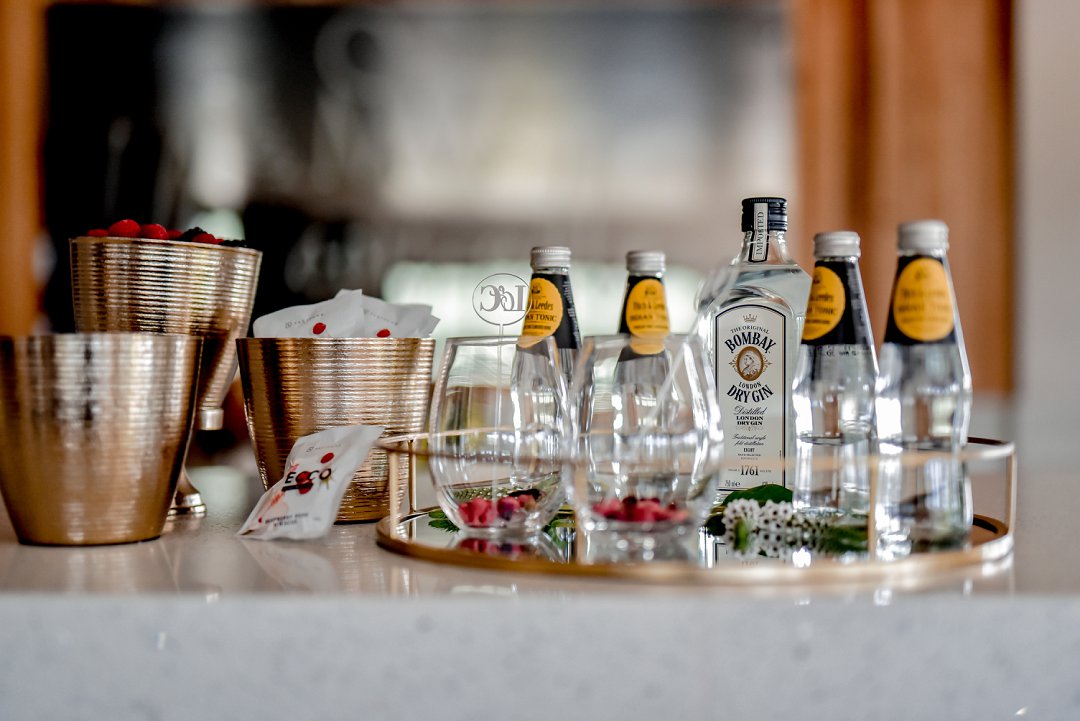 Dekor elemente sluit in ʼn hout tafel met minimalistiese dekor ontwerp. Die gebruik van moderne glase saam met die lang glas kersstaanders skep onmiddellik ʼn luukse gevoel. Dan is daar die pragtige blom-ontwerpe wat in die lig staan op ʼn swart blomme staander. Dit maak dit makliker vir gaste om met mekaar te gesels.