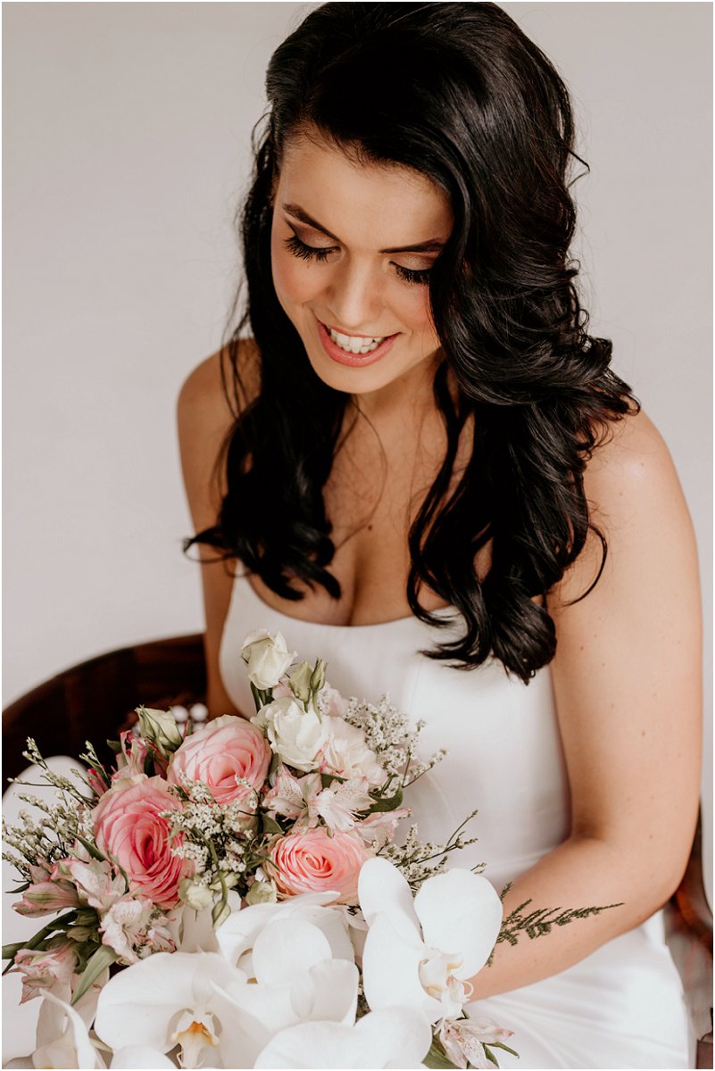 Ons het besluit op ʼn klassieke en elegante styl vir die dag. Ek het verskeie rokke aangepas en besluit op ʼn tydlose wit satyn rok van Sassi Holford. Ormond het ʼn swart pak gedra wat afgerond was met ʼn satyn kraag en tydlose wit roos op sy bors.