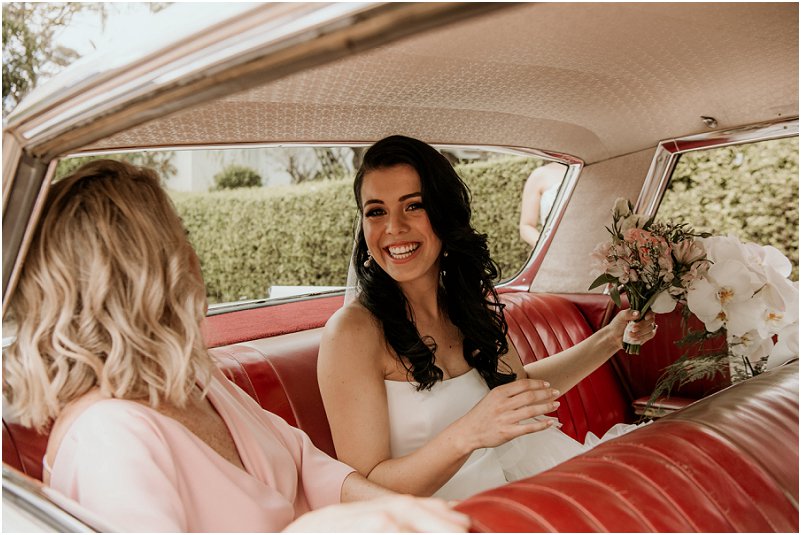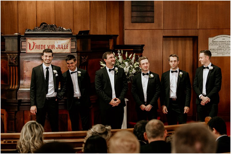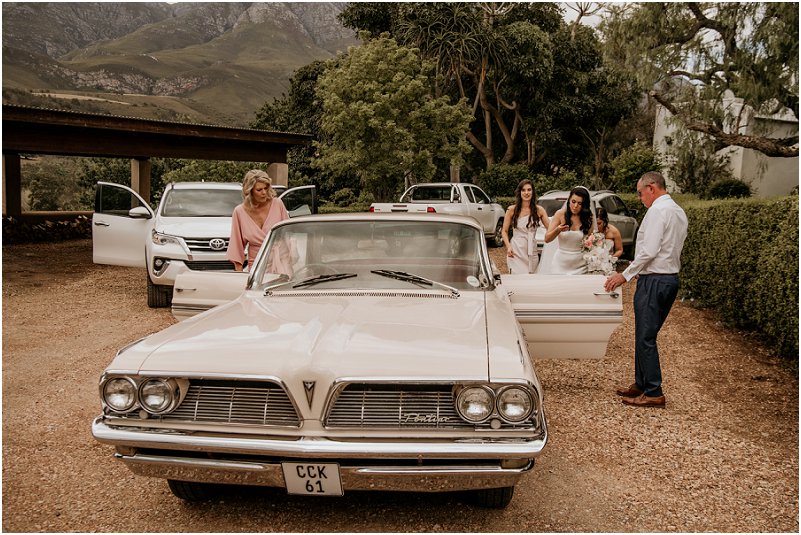 Bruid: Ek het saam met my ouers van die gastehuis na die kerk in ʼn “vintage” 1977 Pontiac gery. Dit was 20 min se ry tot by die kerk wat meer soos n uur gevoel het. Ons het gesels en gelag met baie opwinding oor die dag wat voorlê. Ek kon nie wag om in die kerk te kom om vir Ormond te sien nie. Ons kerk diens was baie intiem met die mooiste woorde van die dominee, al waarop ek kon fokus is die liefde tussen my en Ormond en die toekoms wat vir ons voorlê.