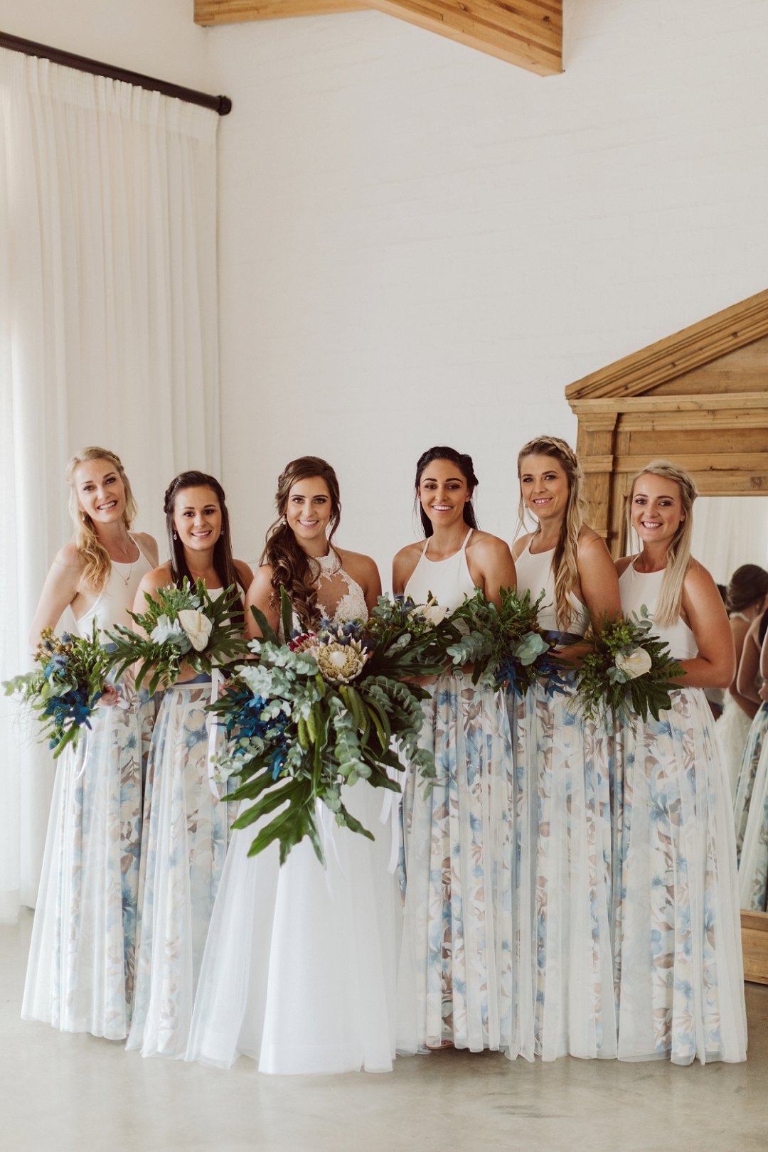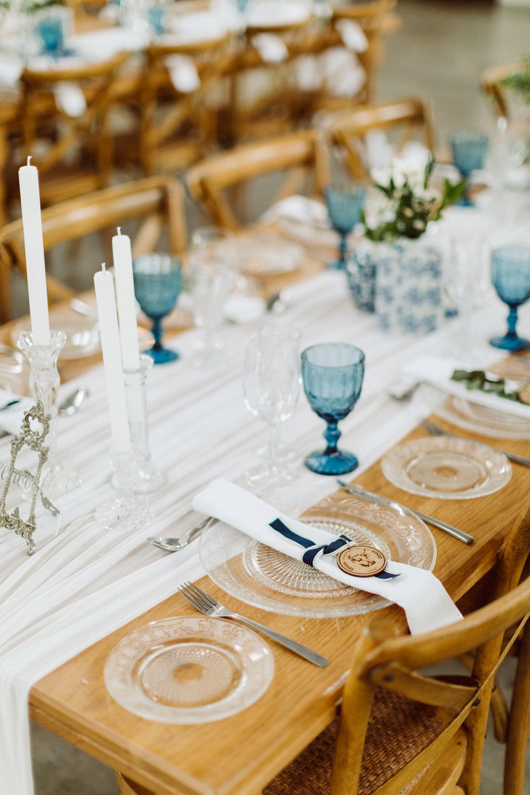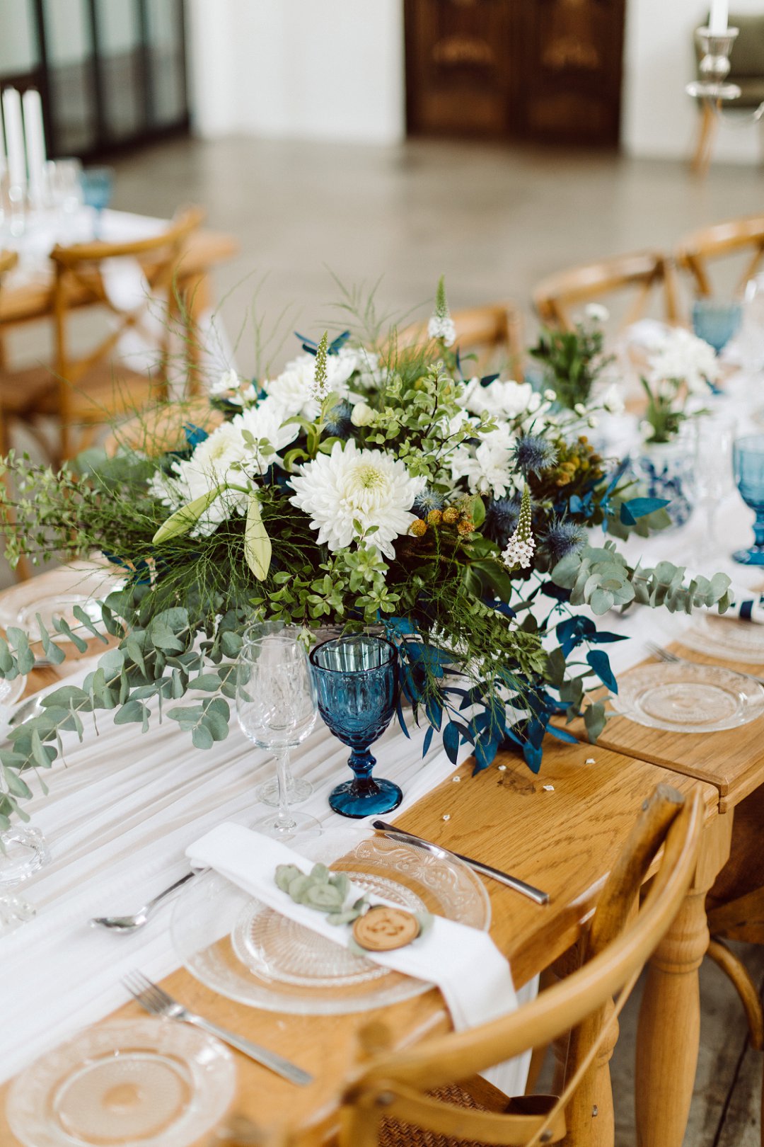 Ons is gek oor Lieneke en Nico se dekor. Alles is net so prentjie mooi. Die blou en wit dekor elemente met tikseltjies groen tussen staan so mooi uit op die rou hout tafels. Die hoë dak met rou hout balke van die venue gee dit ook ekstra ruimte en ‘n lekker plaas gevoel. Jy kan dien hulle het baie pret gehad op hul troudag. Die gaste het almal so gelukkig en opgewonde gelyk om die paartjie se bruilof te vier.